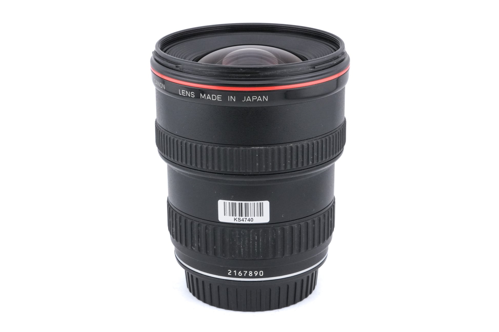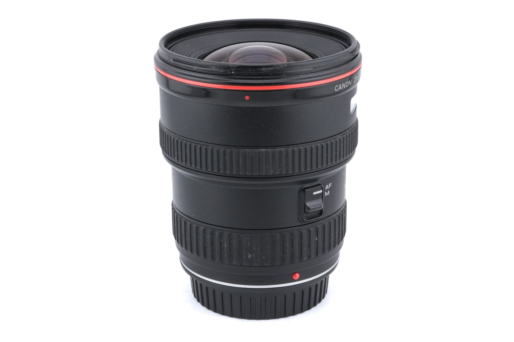 Autofocus wide-angle zoom lens made for EF mount SLRs by Canon starting in 1989. It's part of their L series of professional lenses. Metal and plastic body available in black.