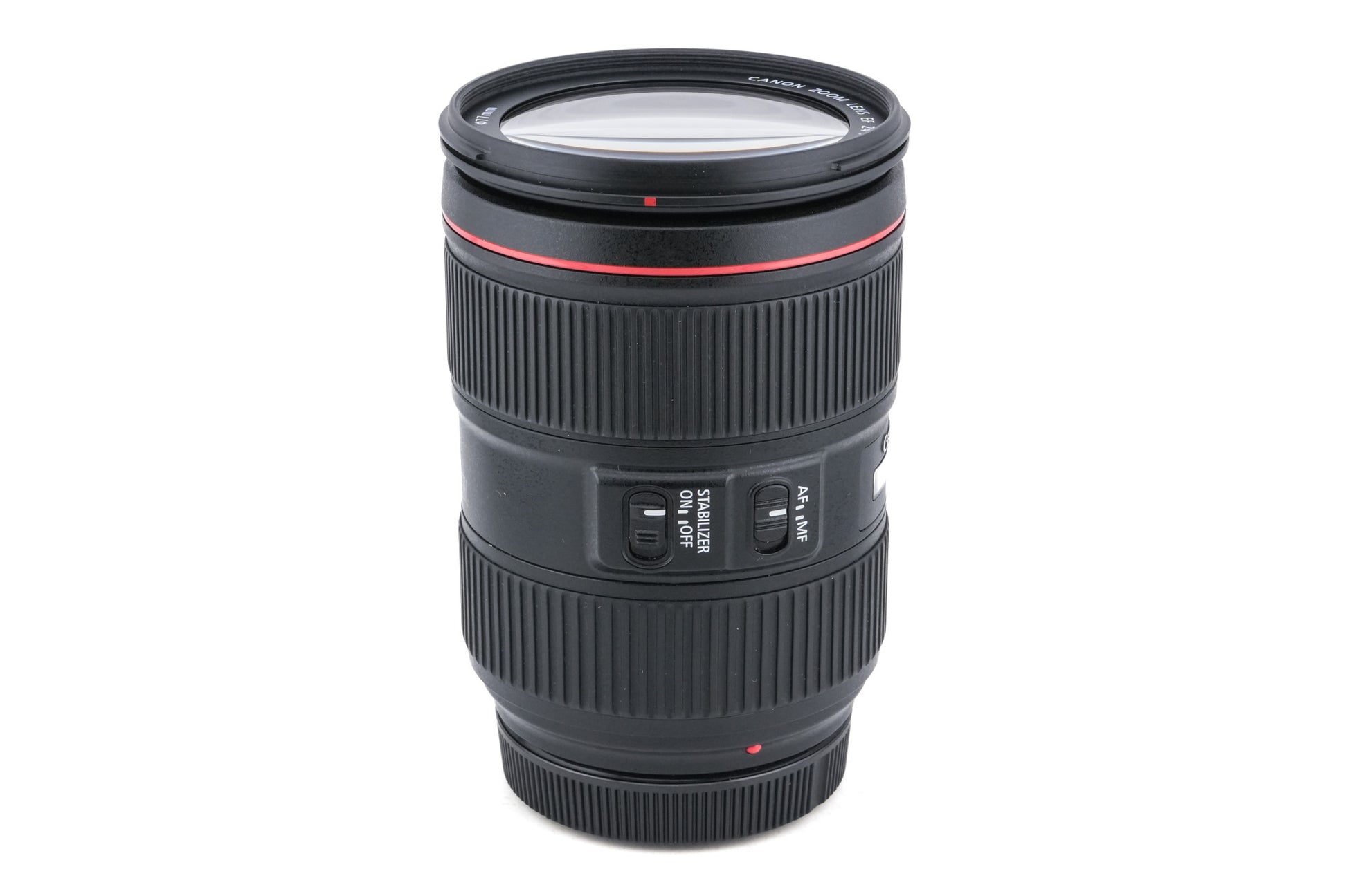 Autofocus general zoom lens made for EF mount SLR cameras by Canon. It is part of their L series of professional lenses and has a weather-sealing gasket. The lens has image stabilization (IS) and uses Canon's Ultrasonic Motor (USM) for autofocus. Plastic body available in black.