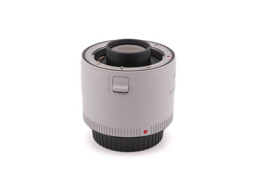 Teleconverter made for EF-mount SLRs by Canon. It works with most L-series lenses and doubles the focal length of a lens at the cost of 2 stops of light transmission. Autofocus only works with lenses that have an aperture of f2.8 or wider. Metal and plastic body available in black and gray.