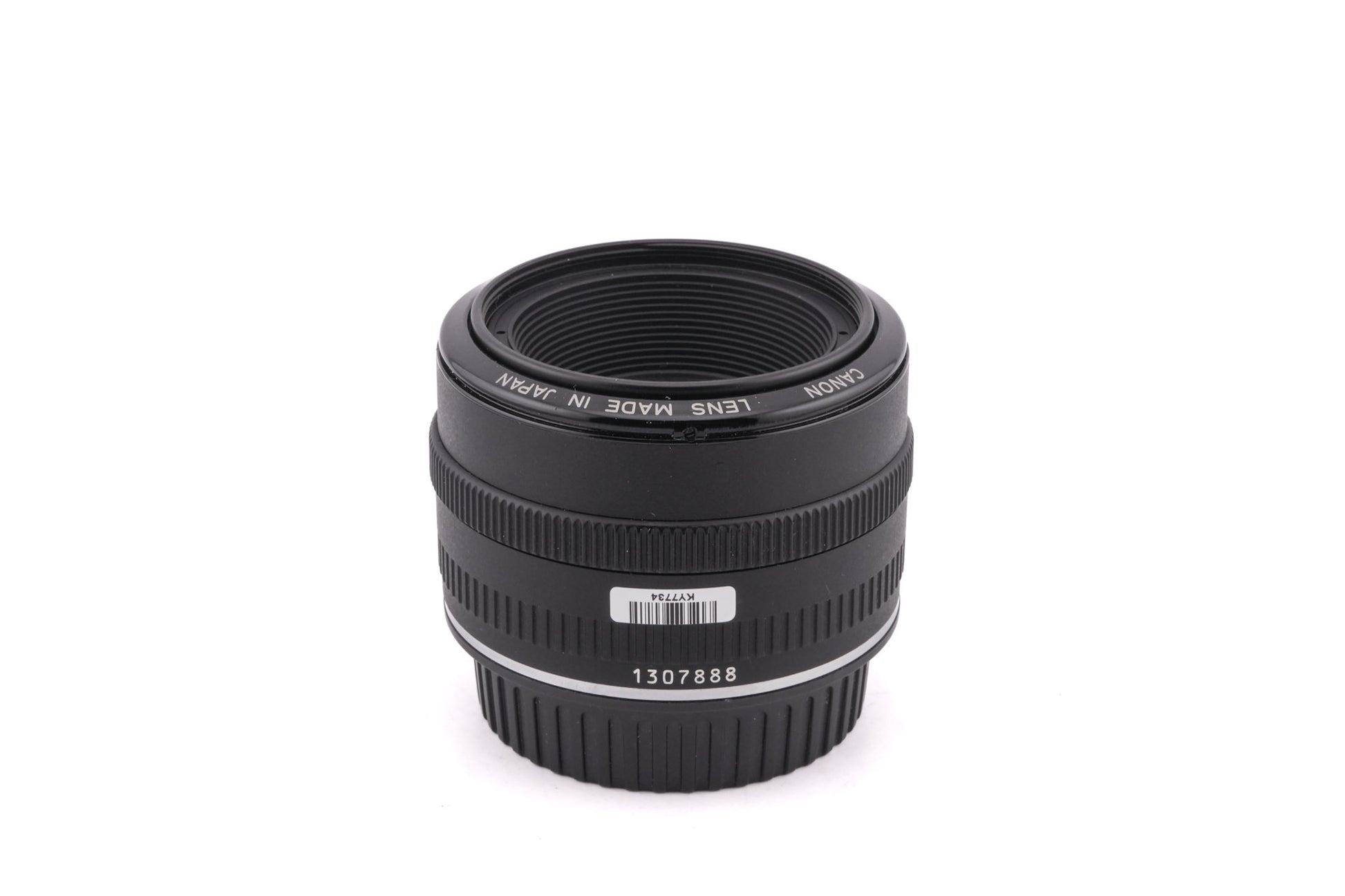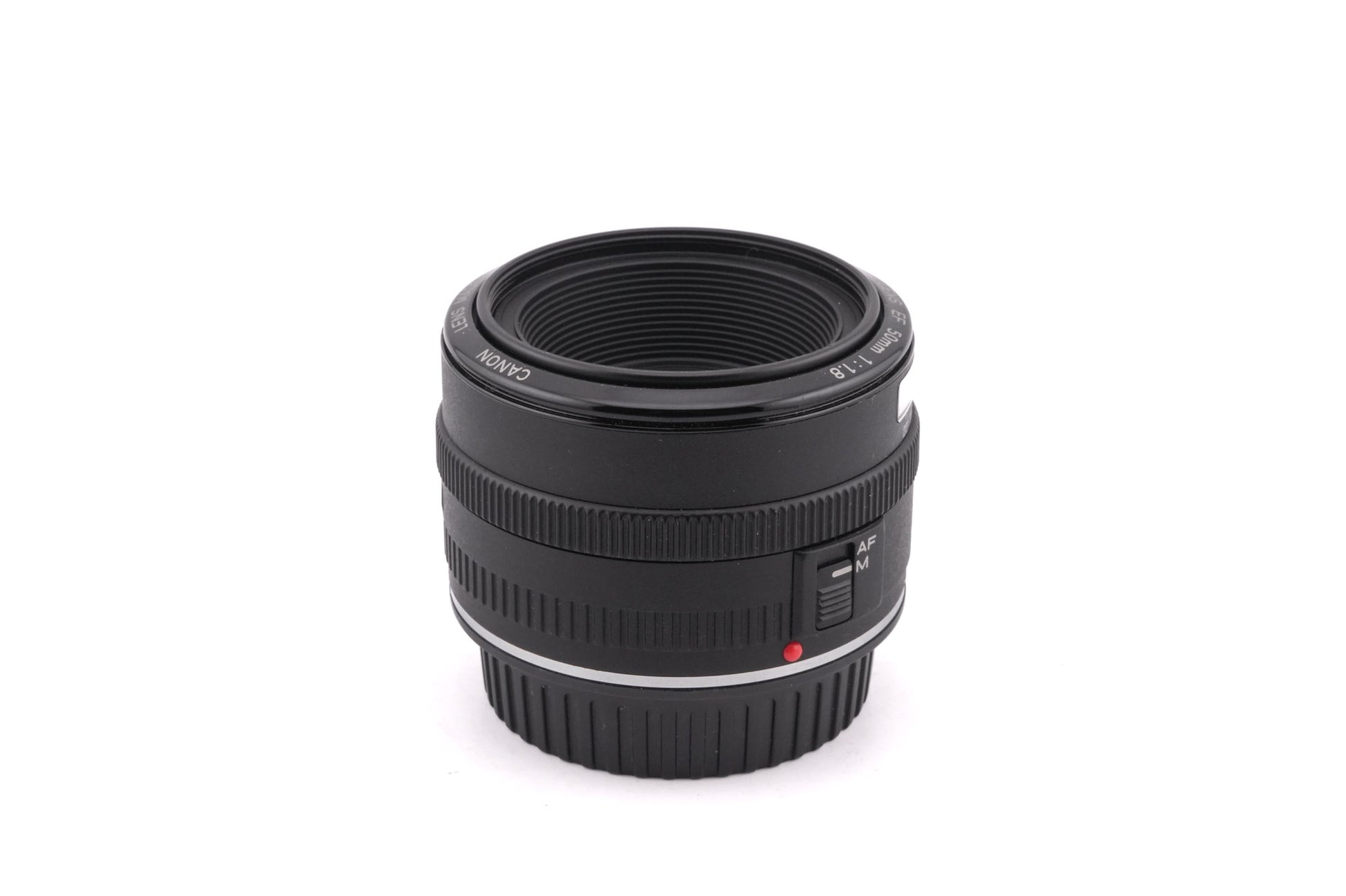 Autofocus normal lens made for EF-mount (D)SLR cameras introduced and manufactured by Canon from 1987 to 1990. This is the first version of the Canon 50mm f1.8 lens. This version has a stainless steel bayonet. Plastic and metal body available in black.