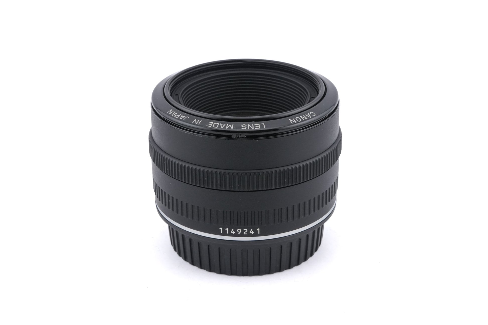 Autofocus normal lens made for EF-mount (D)SLR cameras introduced and manufactured by Canon from 1987 to 1990. This is the first version of the Canon 50mm f1.8 lens. This version has a stainless steel bayonet. Plastic and metal body available in black.