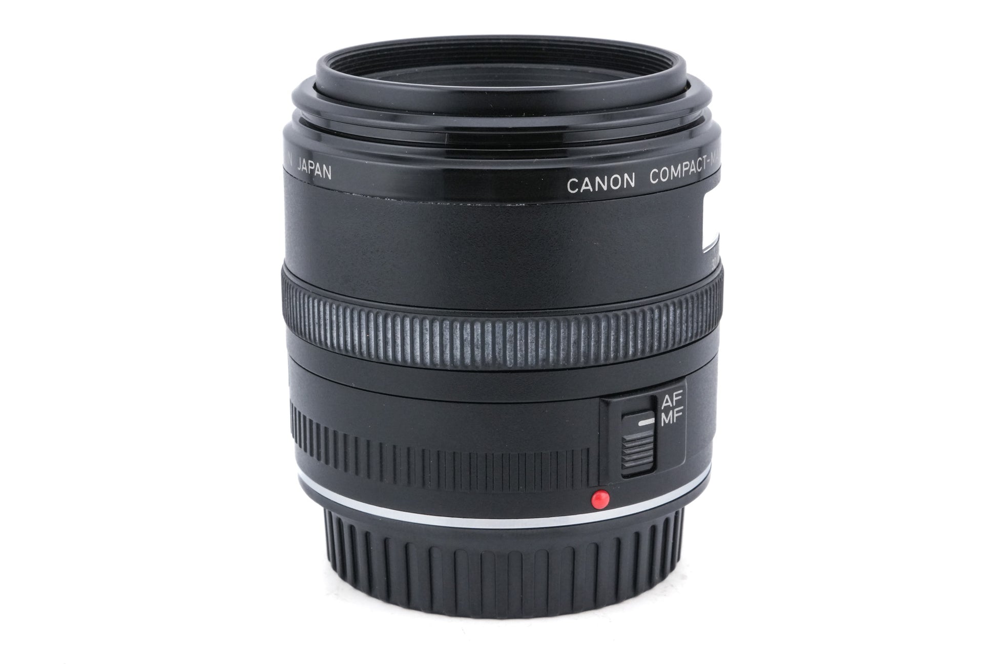 Autofocus normal macro lens made for EF-mount 35mm SLR cameras by Canon starting in 1987. It is capable of 1:2 macro reproduction on its own and 1:1 reproduction with the optional Life Size Converter EF. Plastic and metal body available in black.