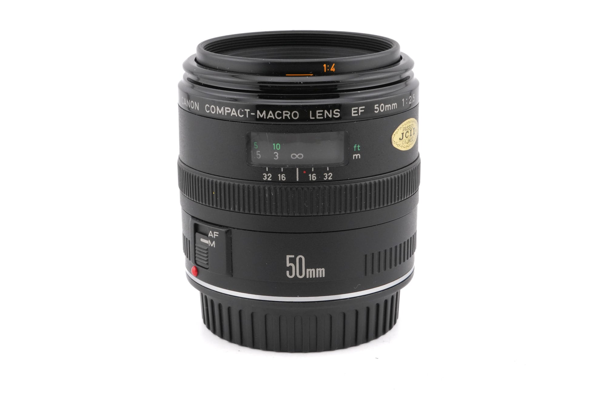 Autofocus normal macro lens made for EF-mount 35mm SLR cameras by Canon starting in 1987. It is capable of 1:2 macro reproduction on its own and 1:1 reproduction with the optional Life Size Converter EF. Plastic and metal body available in black.