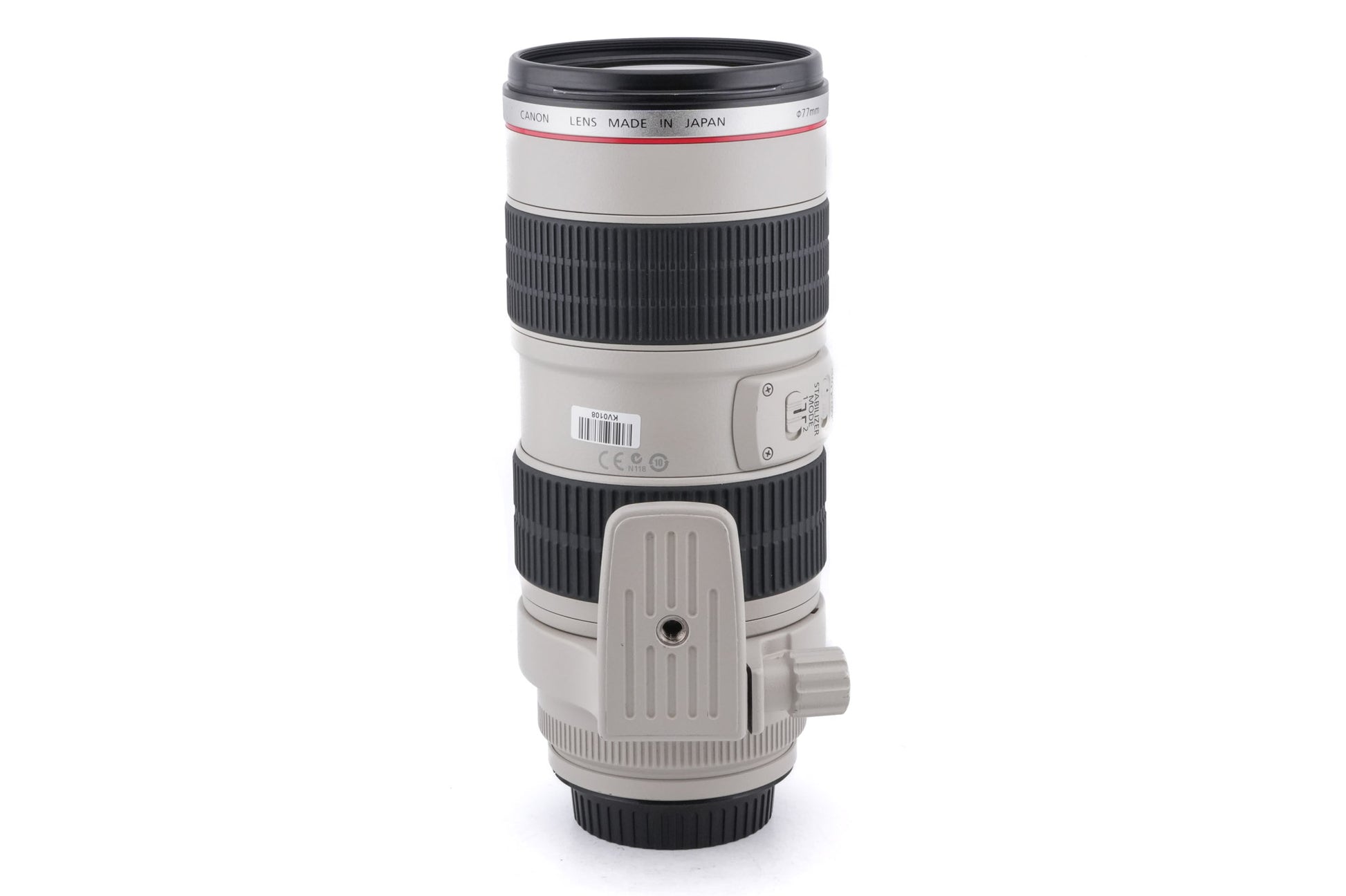Autofocus telephoto zoom lens made for EF-mount SLR cameras by Canon. It's part of Canon's L-series of professional lenses and has light weather sealing. It also has image stabilization (IS) and an ultrasonic focusing motor (USM) for autofocus. Plastic/metal body available in white.