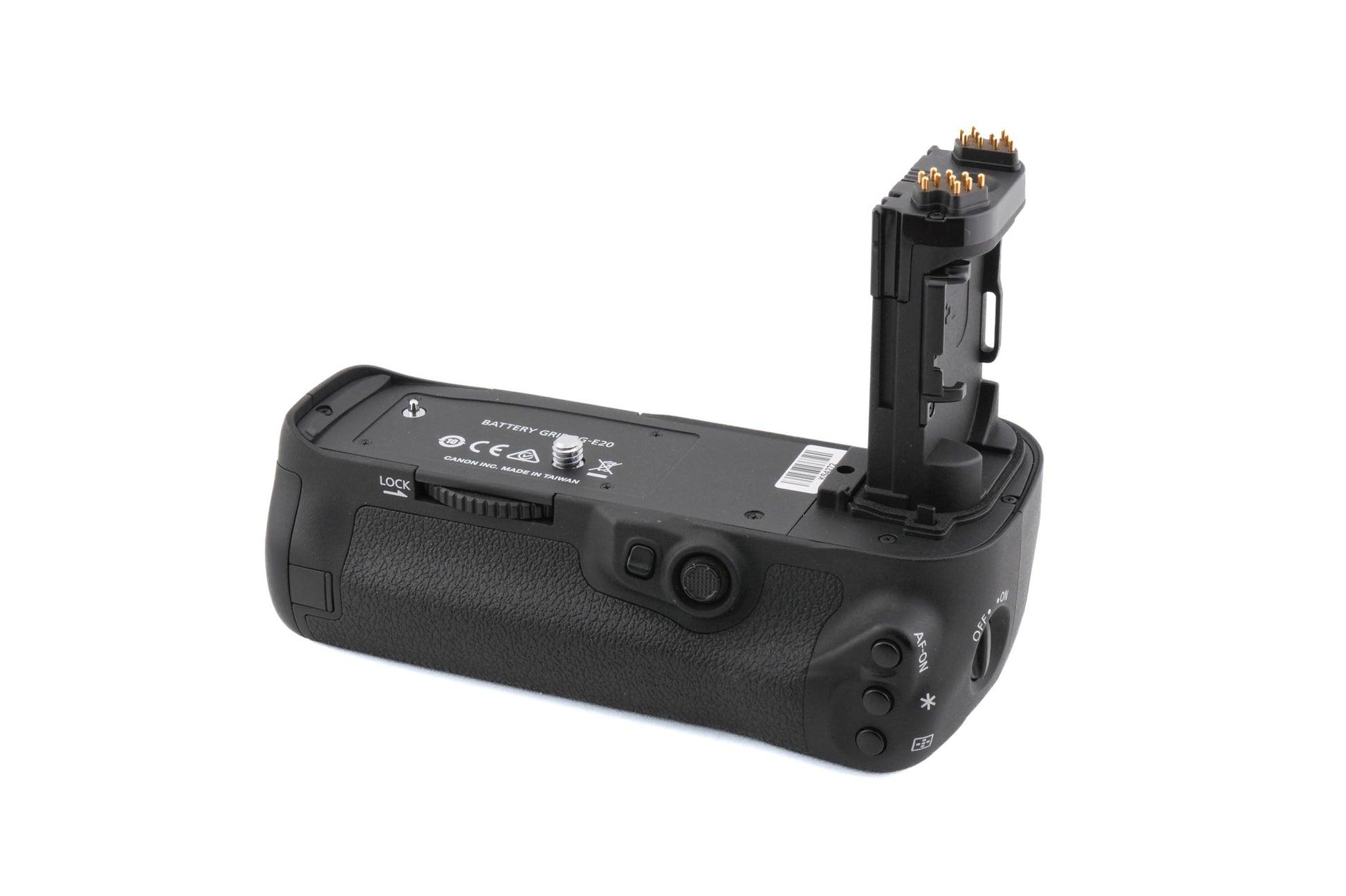 Battery grip for the Canon 5D Mark IV made by Canon. It has a vertical shutter release button, AF point selection, main dial, multi-controller, AE/FE lock button, and multifunction button. It is compatible with LP-E6 and LP-E6N batteries or an optional DC Coupler DR-E6 and AC Adapter AC-E6N. Plastic body available in black.