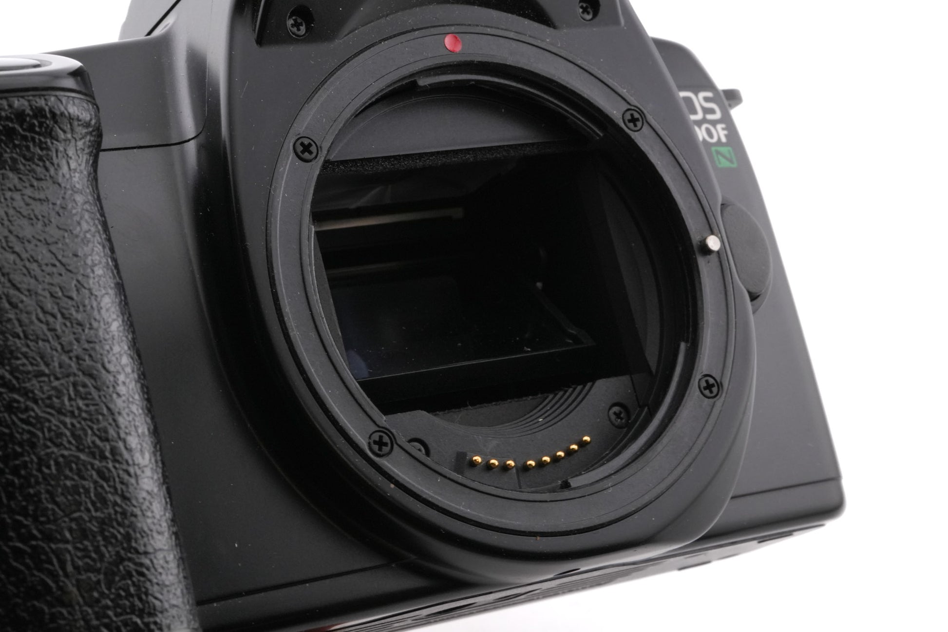 Autofocus EF-mount 35mm SLR camera released by Canon in 1992. It was sold in America under the name Canon EOS Rebel S II. It has a built-in flash. Plastic body available in black.