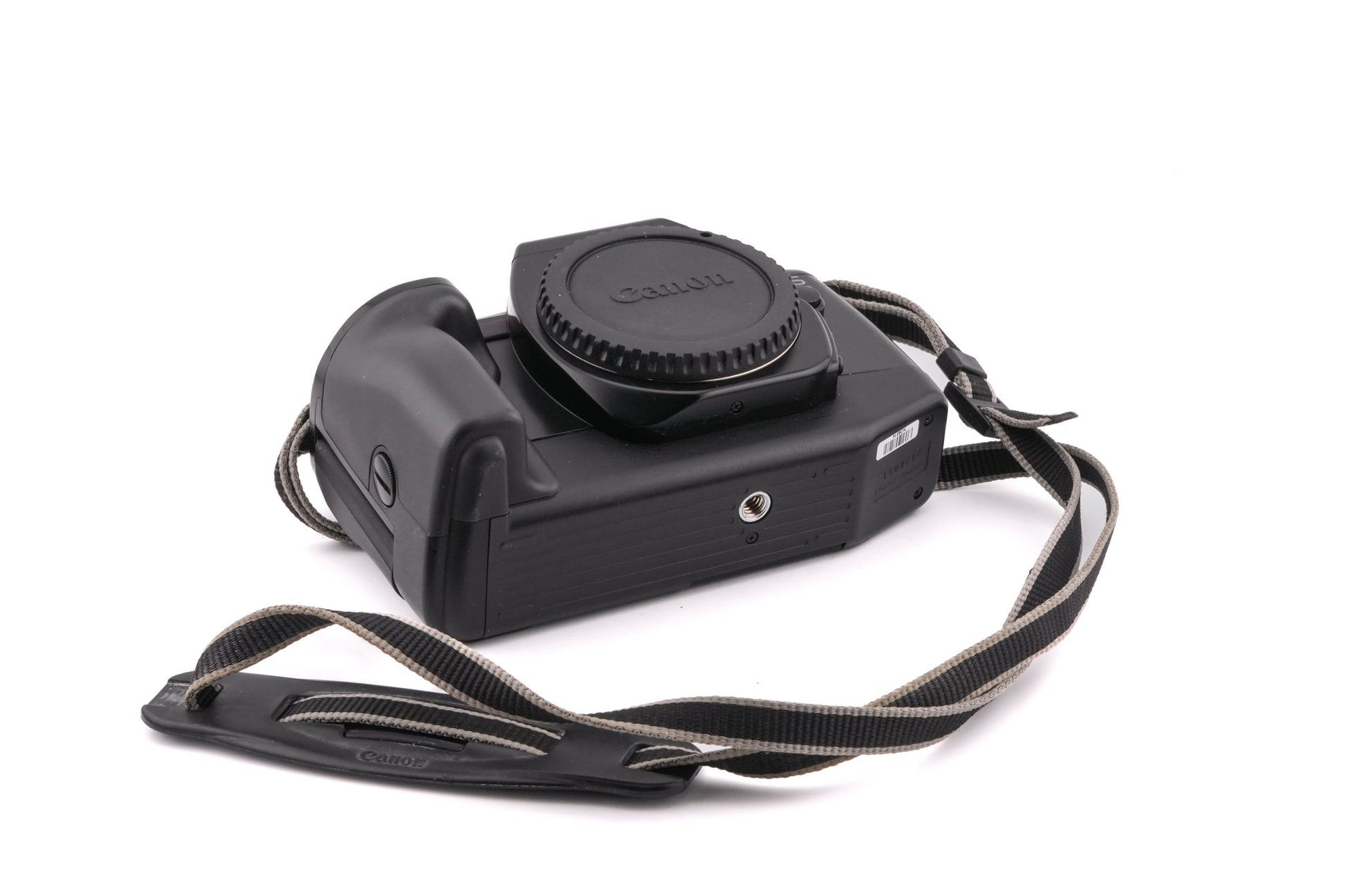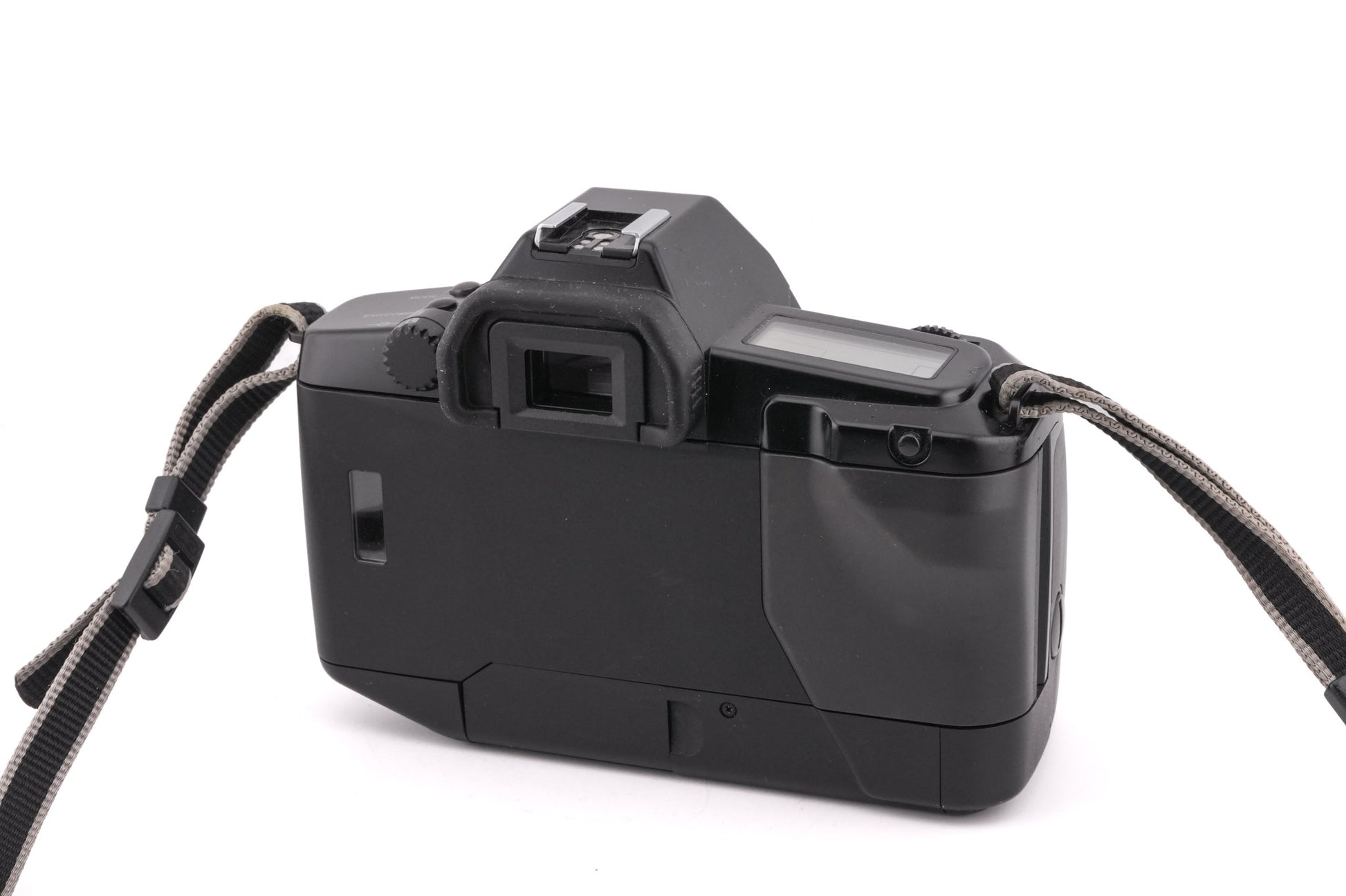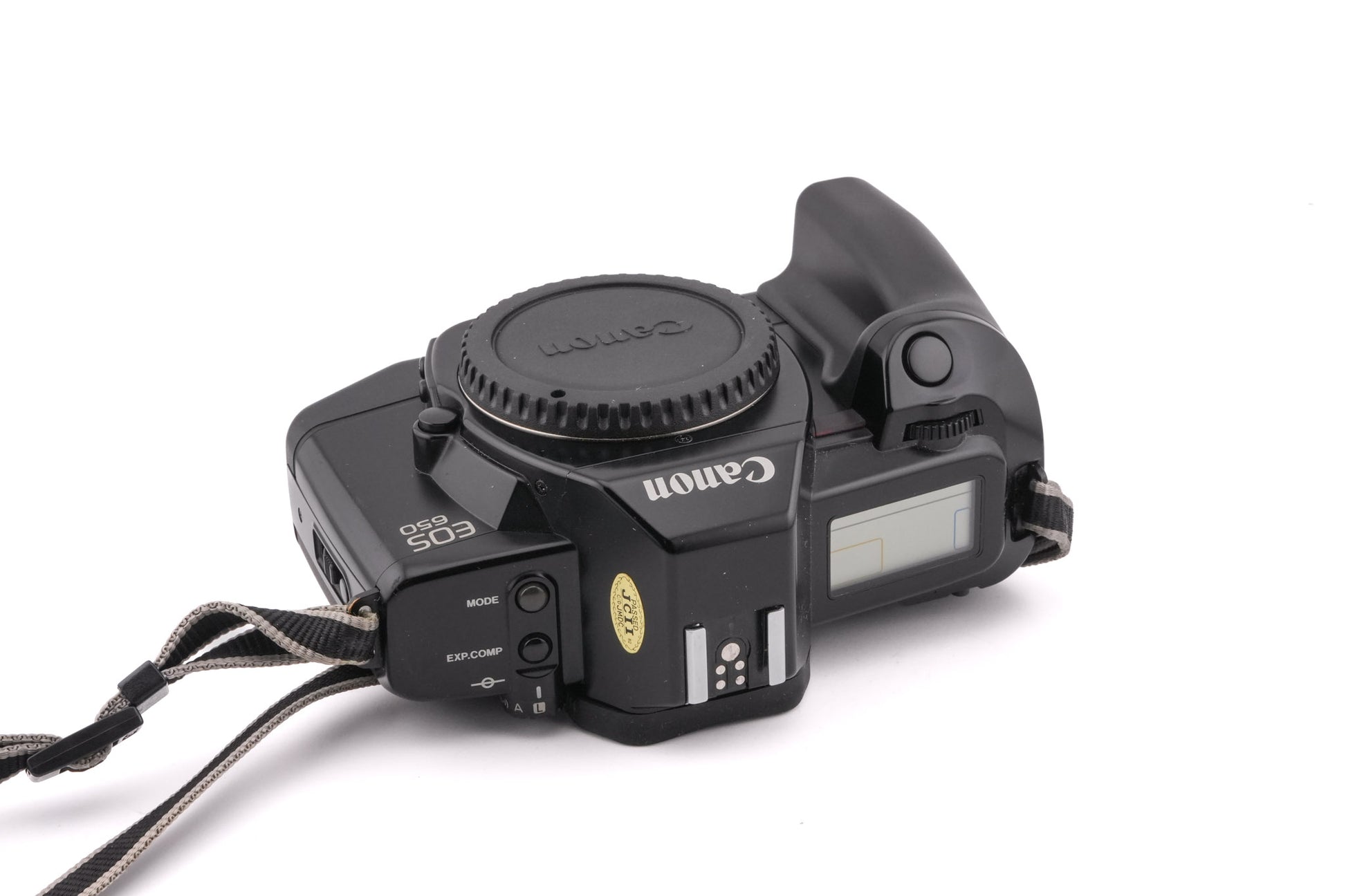 Autofocus EF-mount 35mm SLR released by Canon in 1987. This was the first consumer-grade EOS camera and was introduced alongside the EF lens mount. The original price (118,000 Yen with a 35-70mm lens) is equal to ~ 920 Euros in 2023. It has flash sync at 1/125s and +/- 5 stops of exposure compensation. Plastic body available in black.