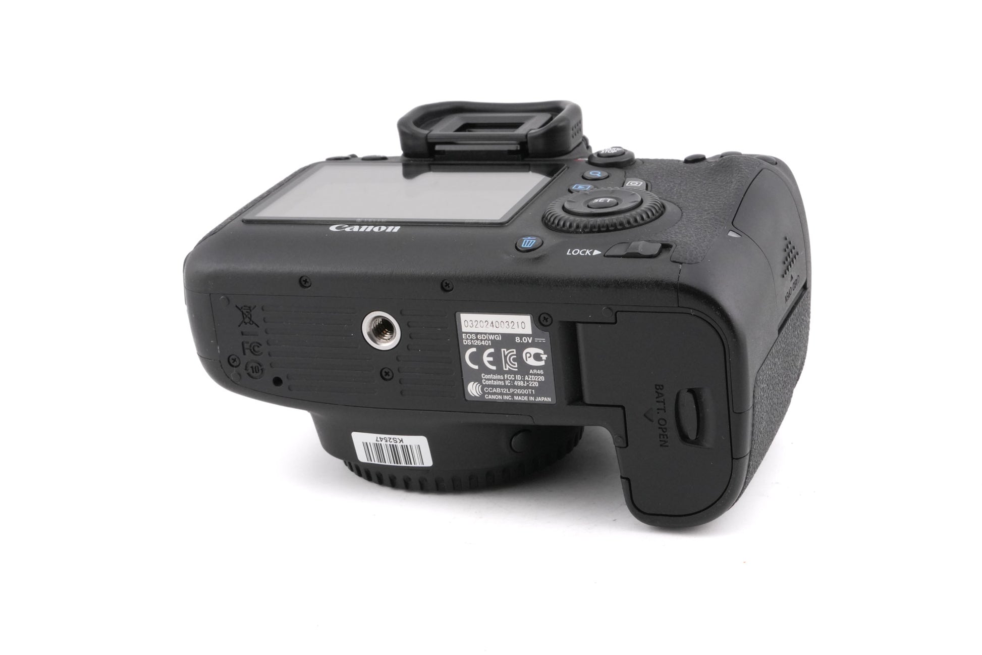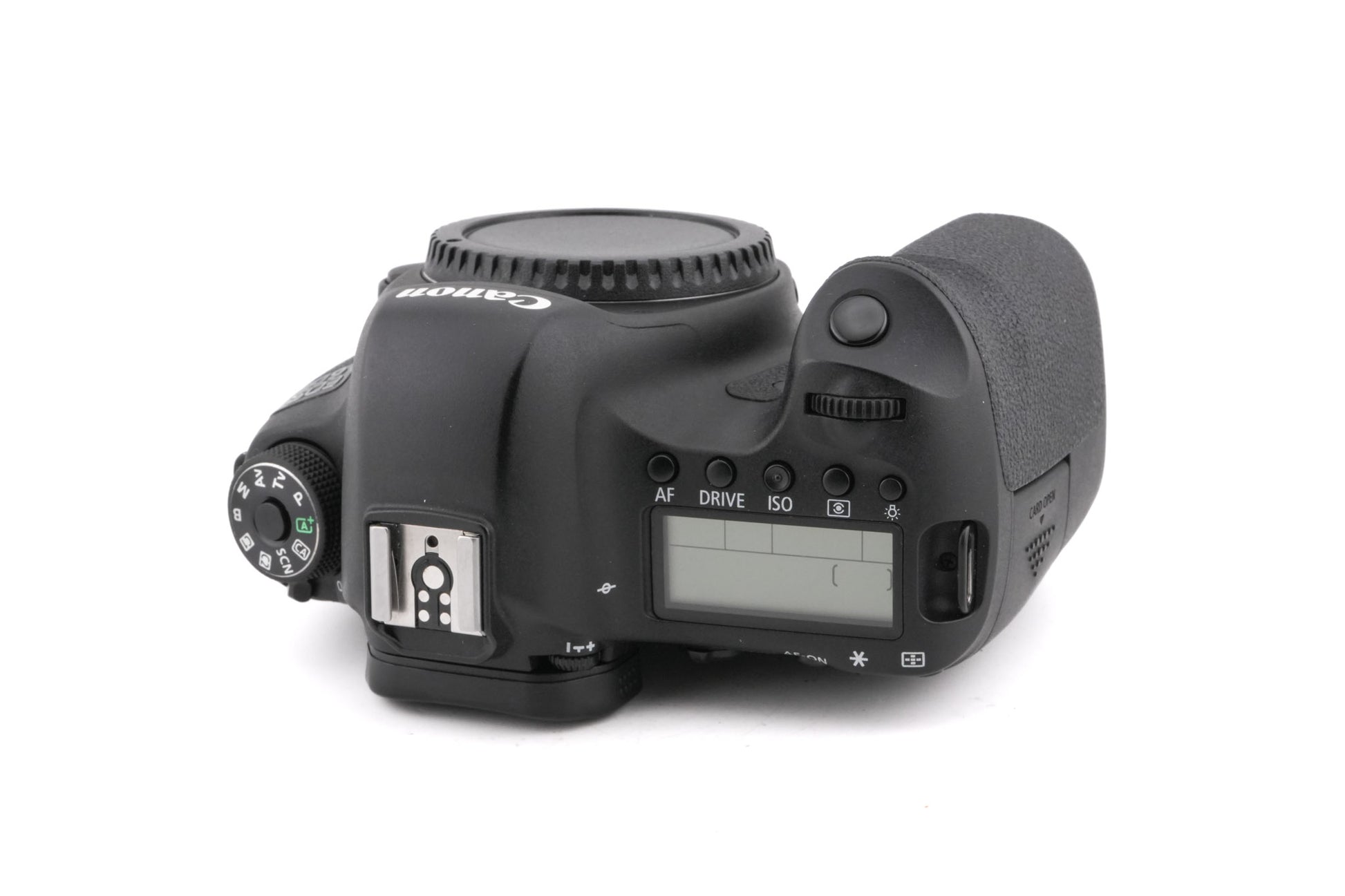 Autofocus full-frame EF-mount DSLR camera released by Canon in 2012. The (WG) model has WiFi and GPS functions. Features 11-point autofocus and full HD video capability. Metal and plastic body in black.