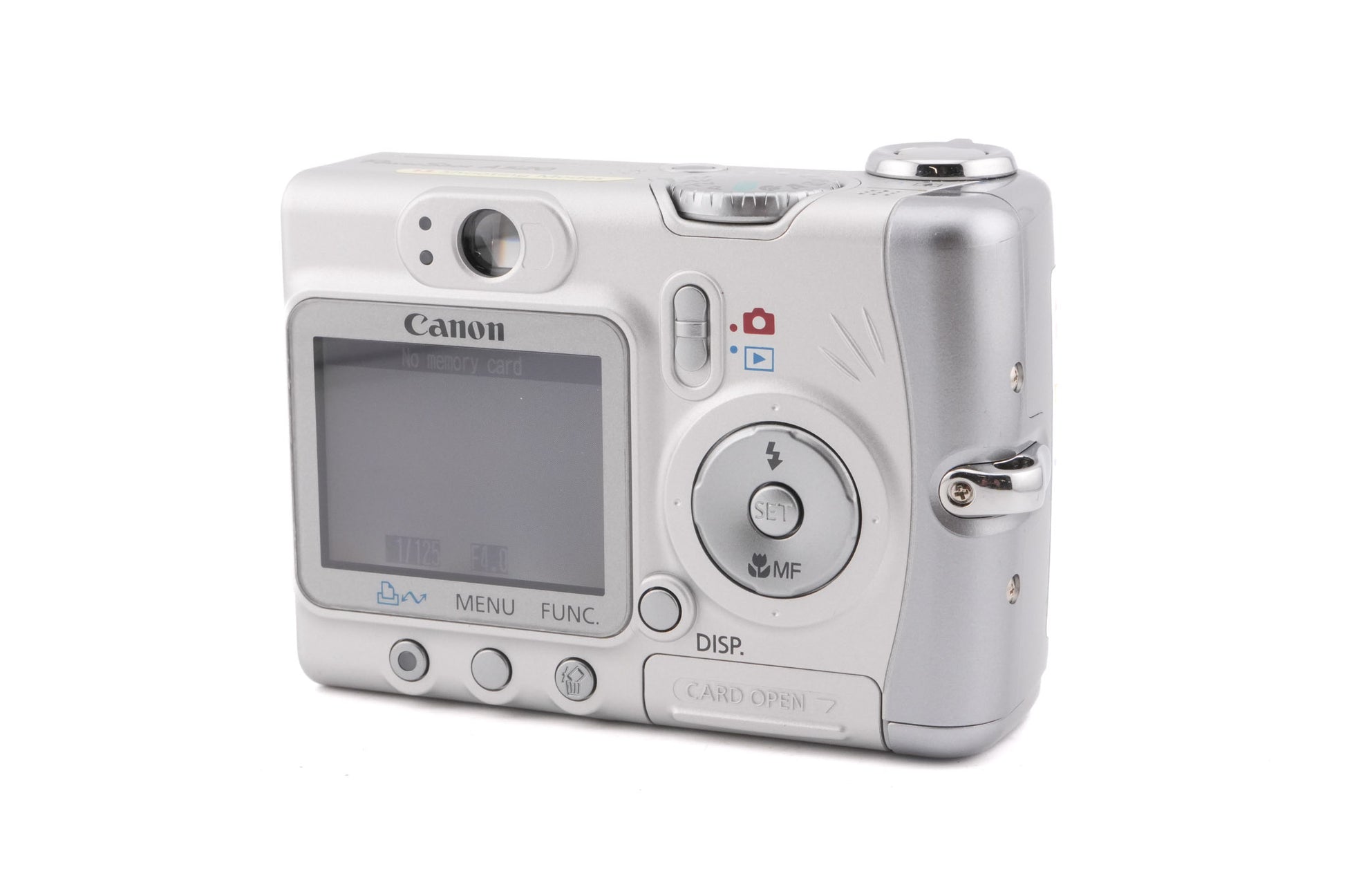 Autofocus digital point-and-shoot camera released by Canon in 2005. It improved on its predecessors by being almost 20% smaller and having a longer zoom reach. The lens gives the equivalent field of view of 35-140mm on full frame / 35mm. It can record 480p video at 10 fps. It can only use SD cards with capacities of 1 GB or less. Plastic body available in silver.