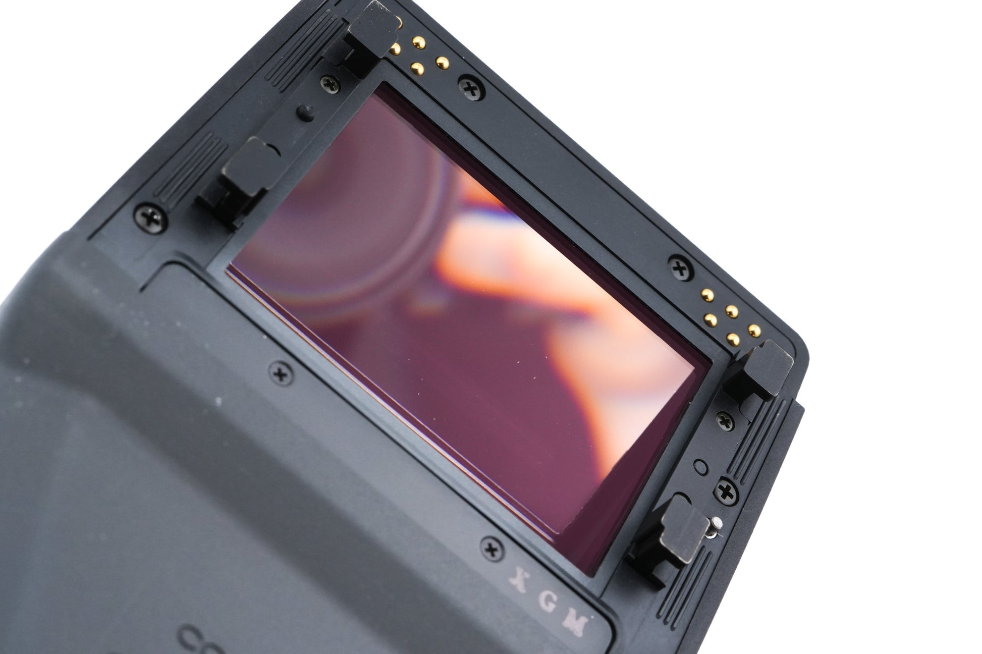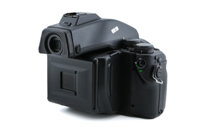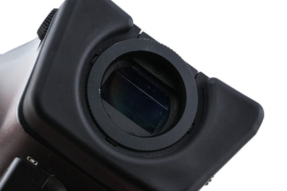 Metered eye-level prism finder made for the Contax 645 system, introduced by Contax. Metal and plastic body available in black.