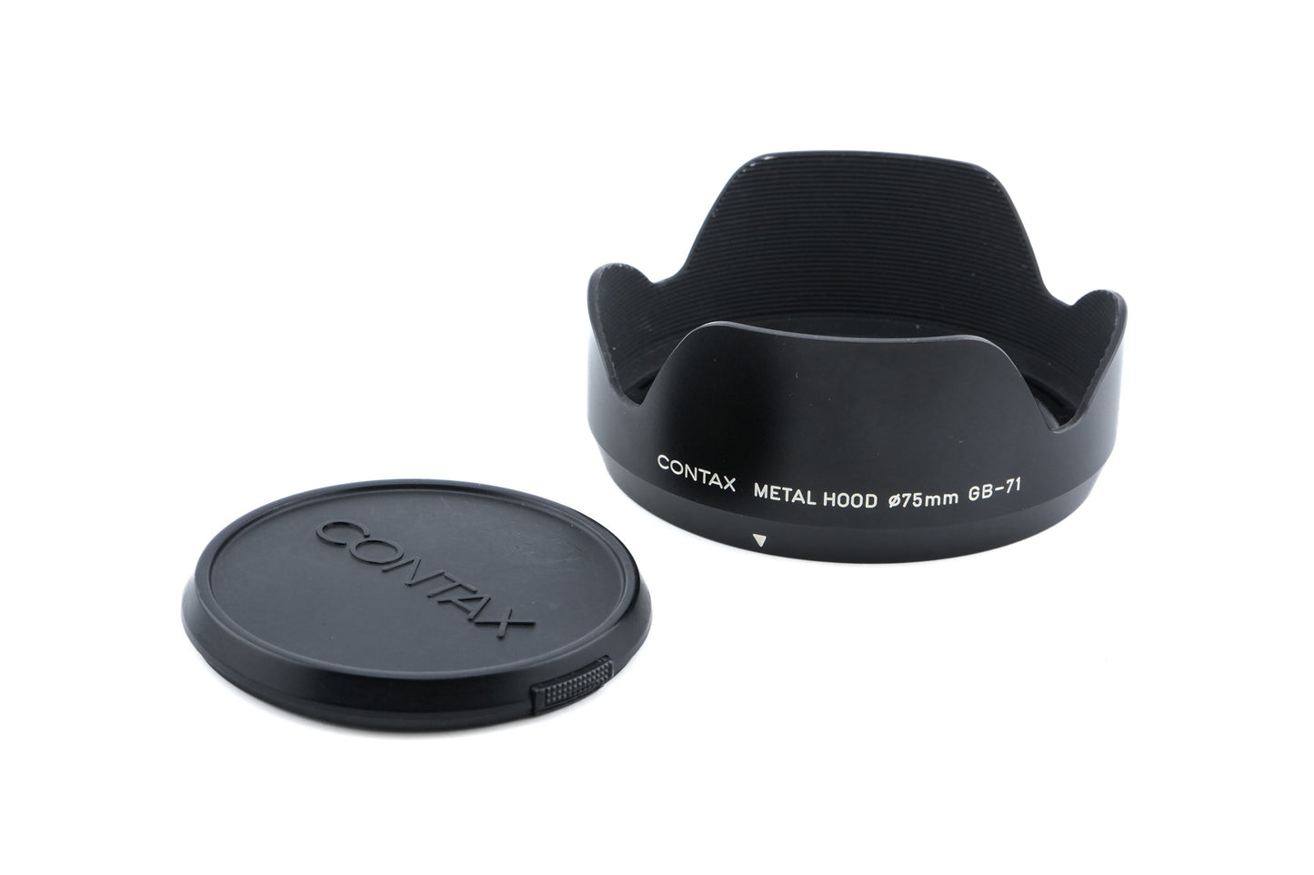 Manual focus normal lens made for Contax 645 mount 120 SLRs by Carl Zeiss. It has Zeiss' T* coatings and is one of the fastest lenses made for medium format cameras. It gives the equivalent field of view to a 50mm lens on full frame/35mm. Metal body available in black.