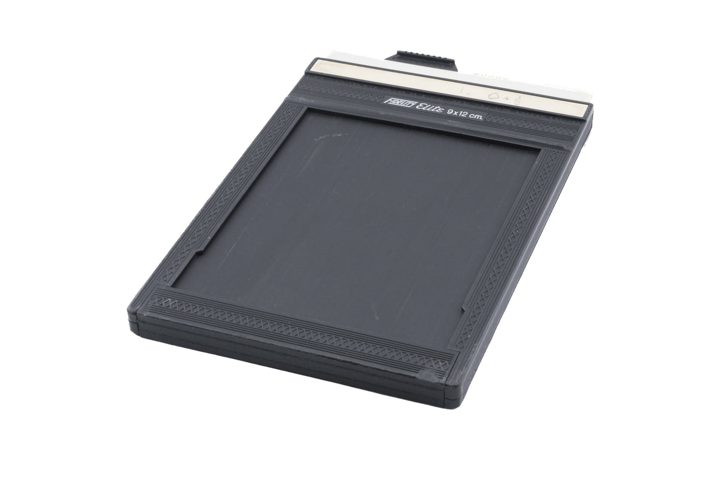 9x12cm sheet film holder made by Fidelity. Each holder can hold two sheets of film, one on each side. Made in the USA. Plastic body available in black.