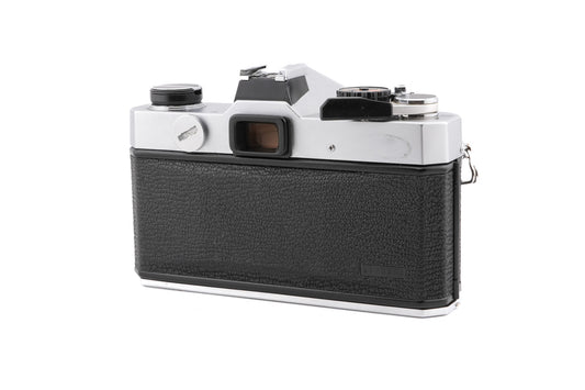 Manual focus 35mm M42 mount SLR camera released by Fujica in 1978. Metal body in black & silver.