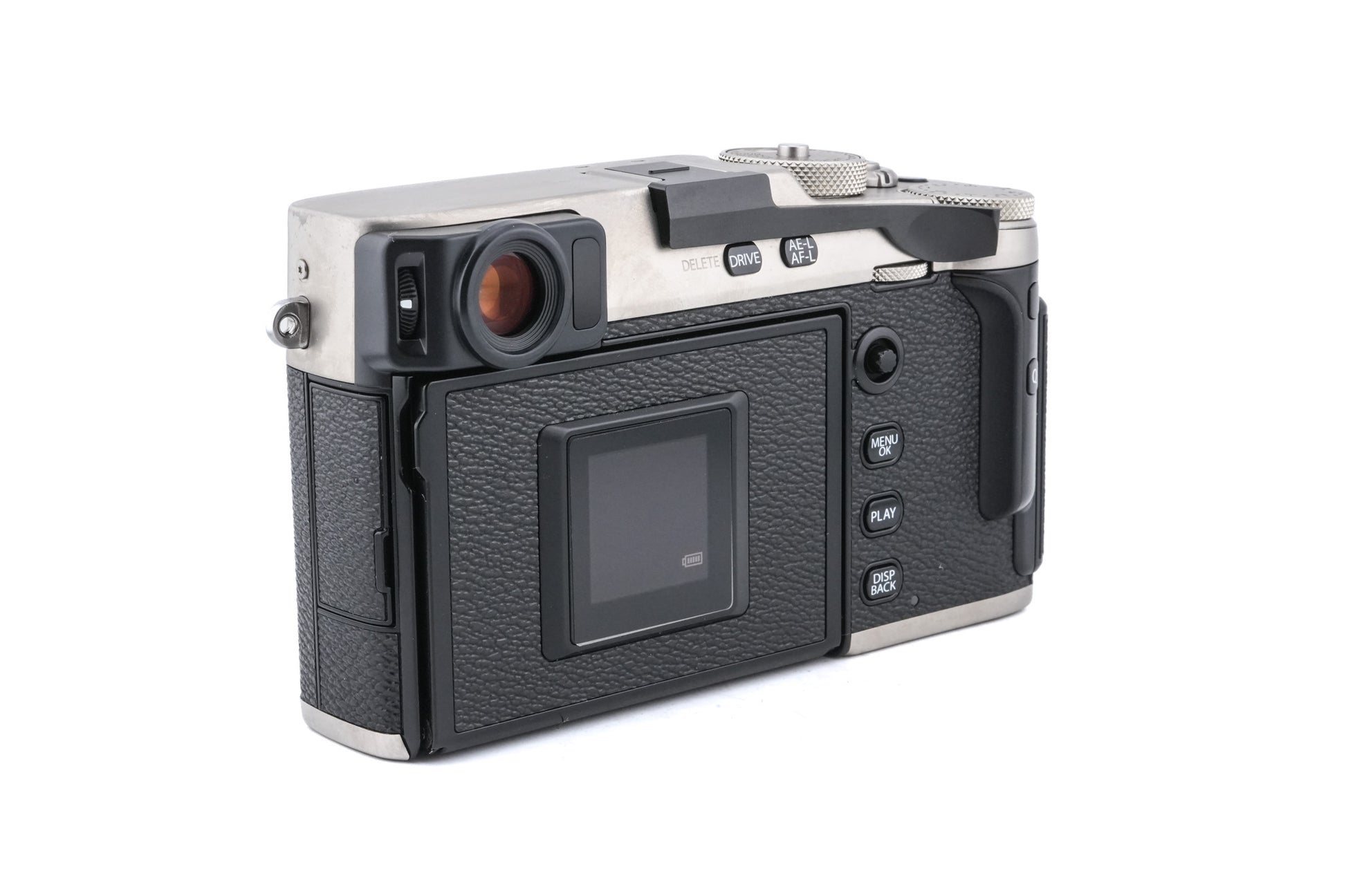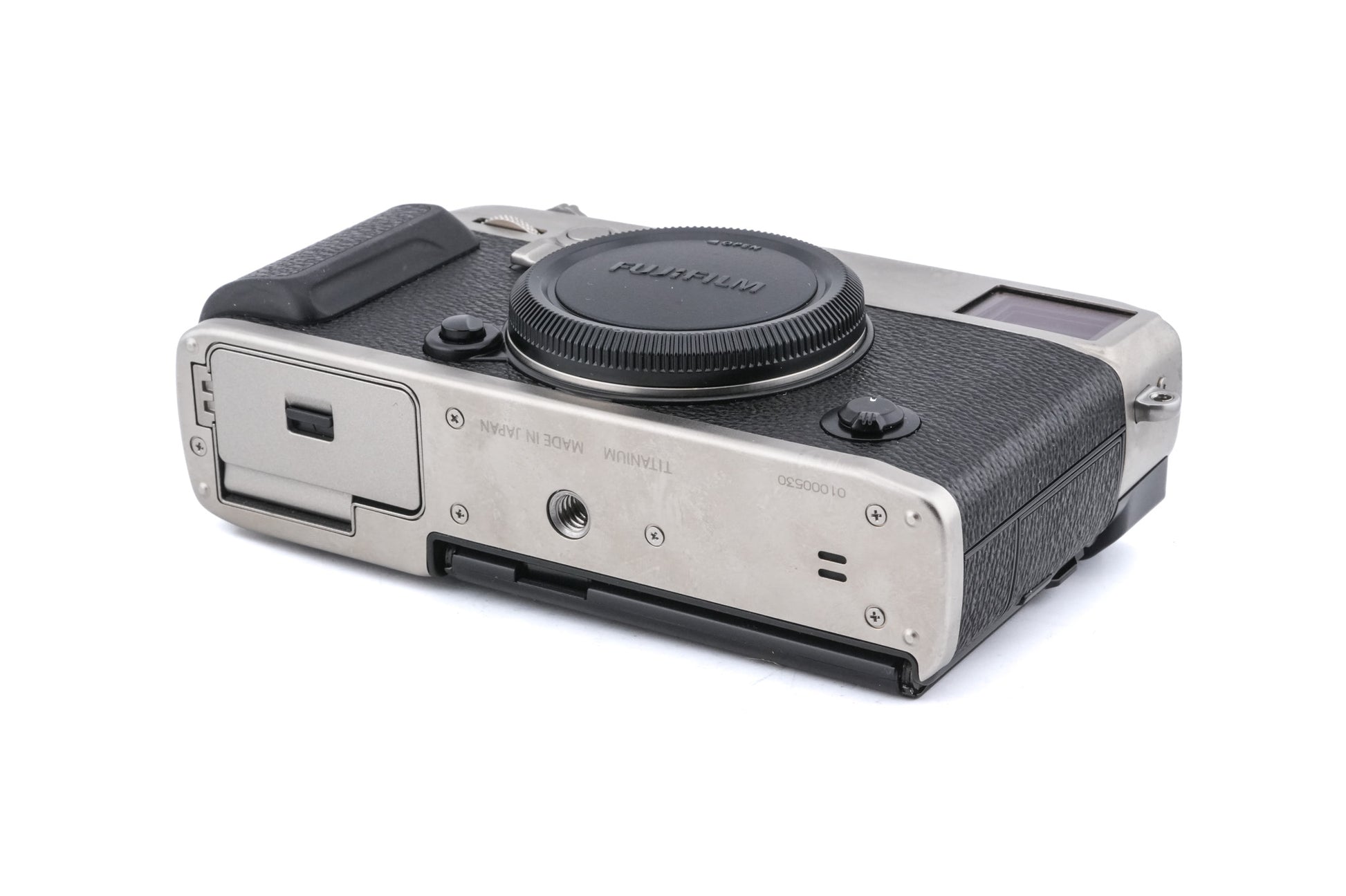 Autofocus X-mount digital mirrorless camera released by Fujifilm in 2019. It has a hybrid electro-optical viewfinder with an OLED display. The electronic viewfinder magnification was updated from 0.59x to 0.66x. It has a hidden rear screen that can be unfolded for low-angle shots and can record 4K video. This body has been coated with Duratect titanium to improve durability. It is otherwise identical to the normal X-Pro 3. Metal body available in dark gray.