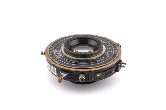Large format lens with ACME Synchro No 3 shutters made by Ilex. Metal body available in black.