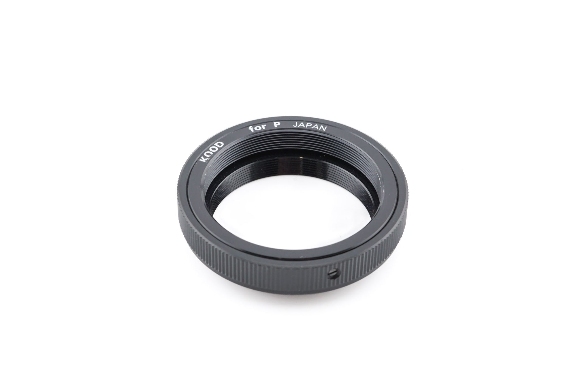 Lens adapter for mounting M42 lenses to T2 mount cameras made by KOOD. Metal body available in black.