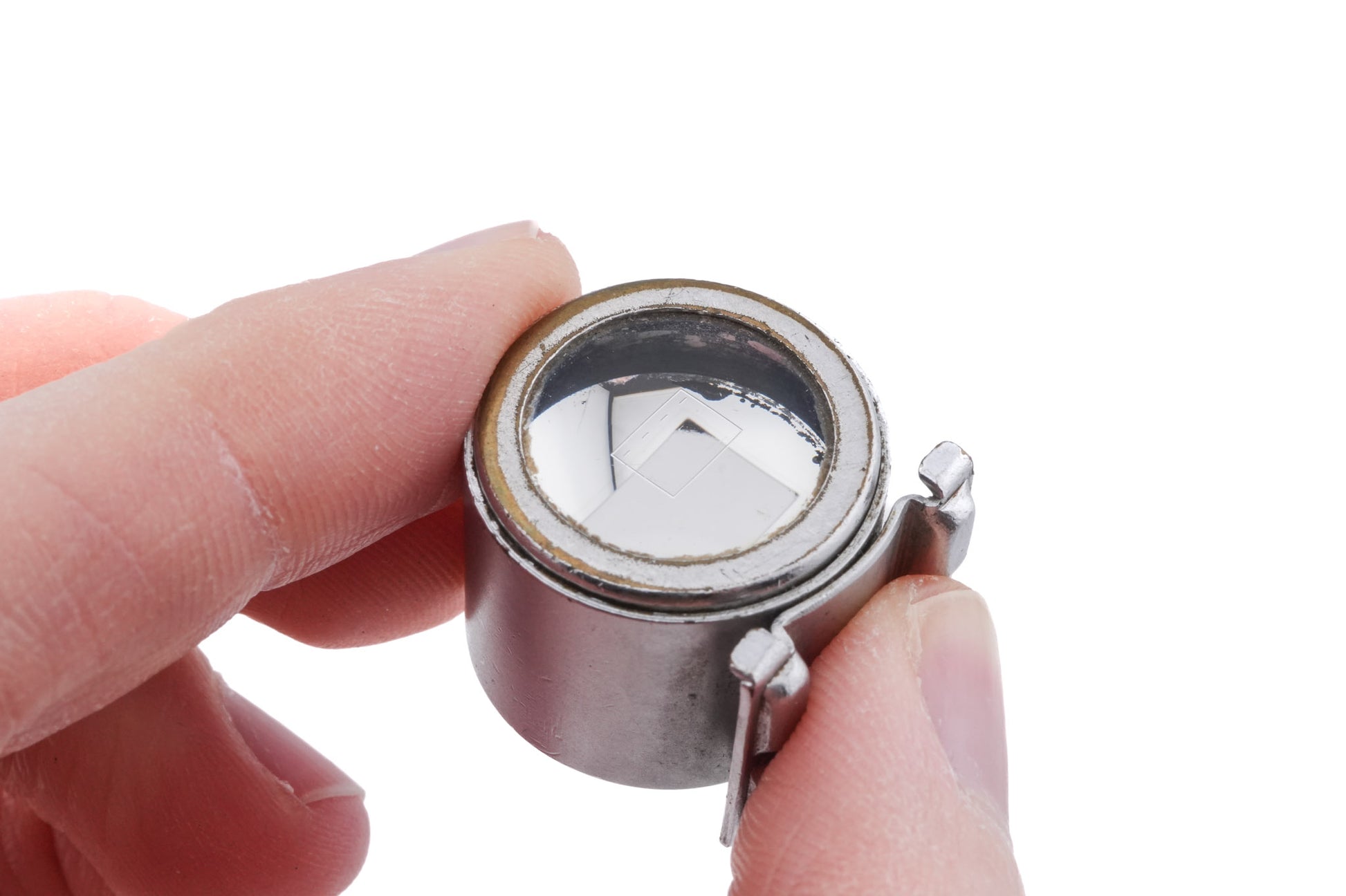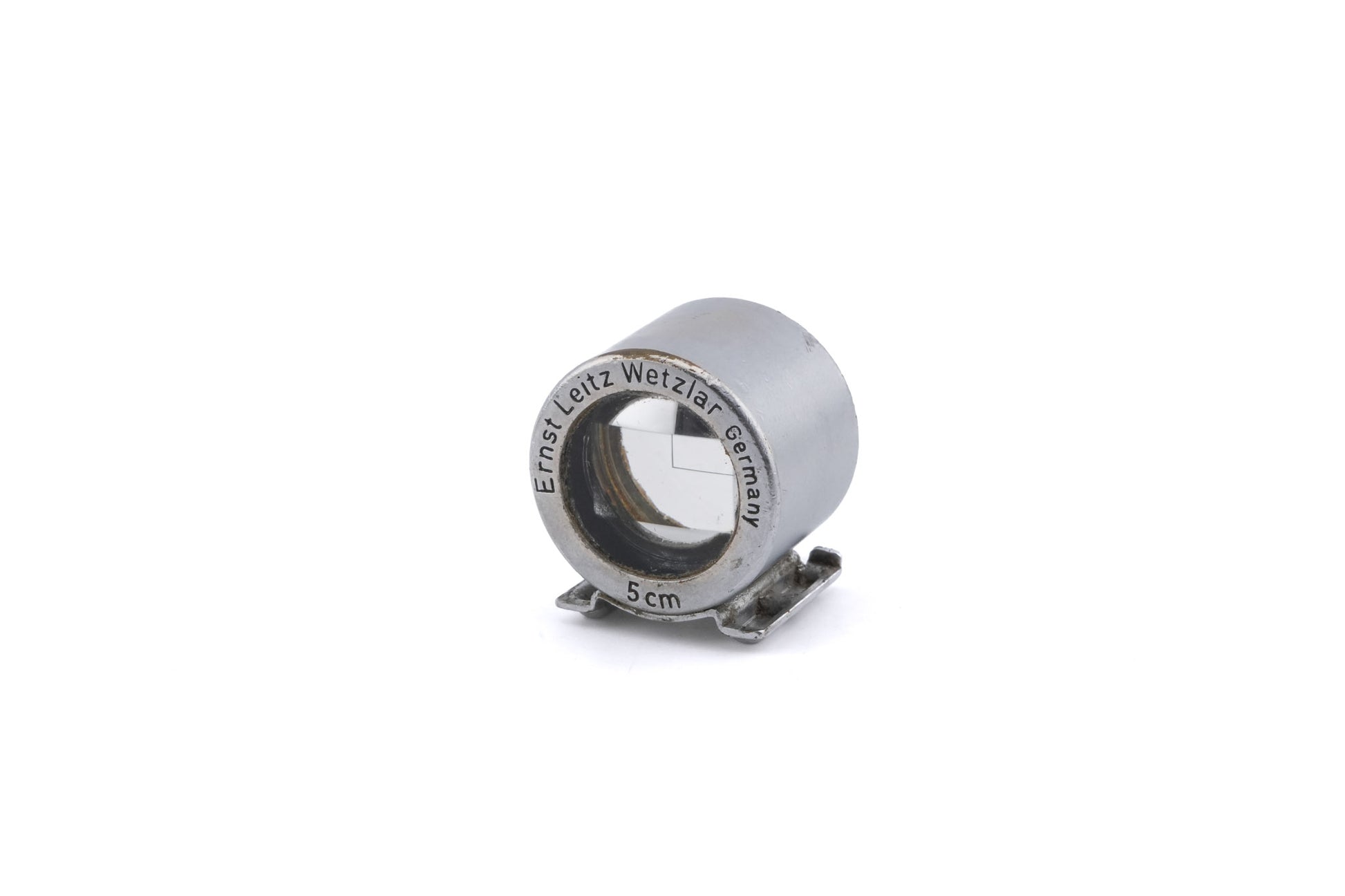 Optical viewfinder made for LTM/M39 mount 35mm rangefinder cameras by Leica in 1951. The first version is marked "5 cm" and the later version "50mm" with grooves for gripping on the sides. The earlier version's product code is (SBOOI), and the later version's is (12105). Metal body available in silver.