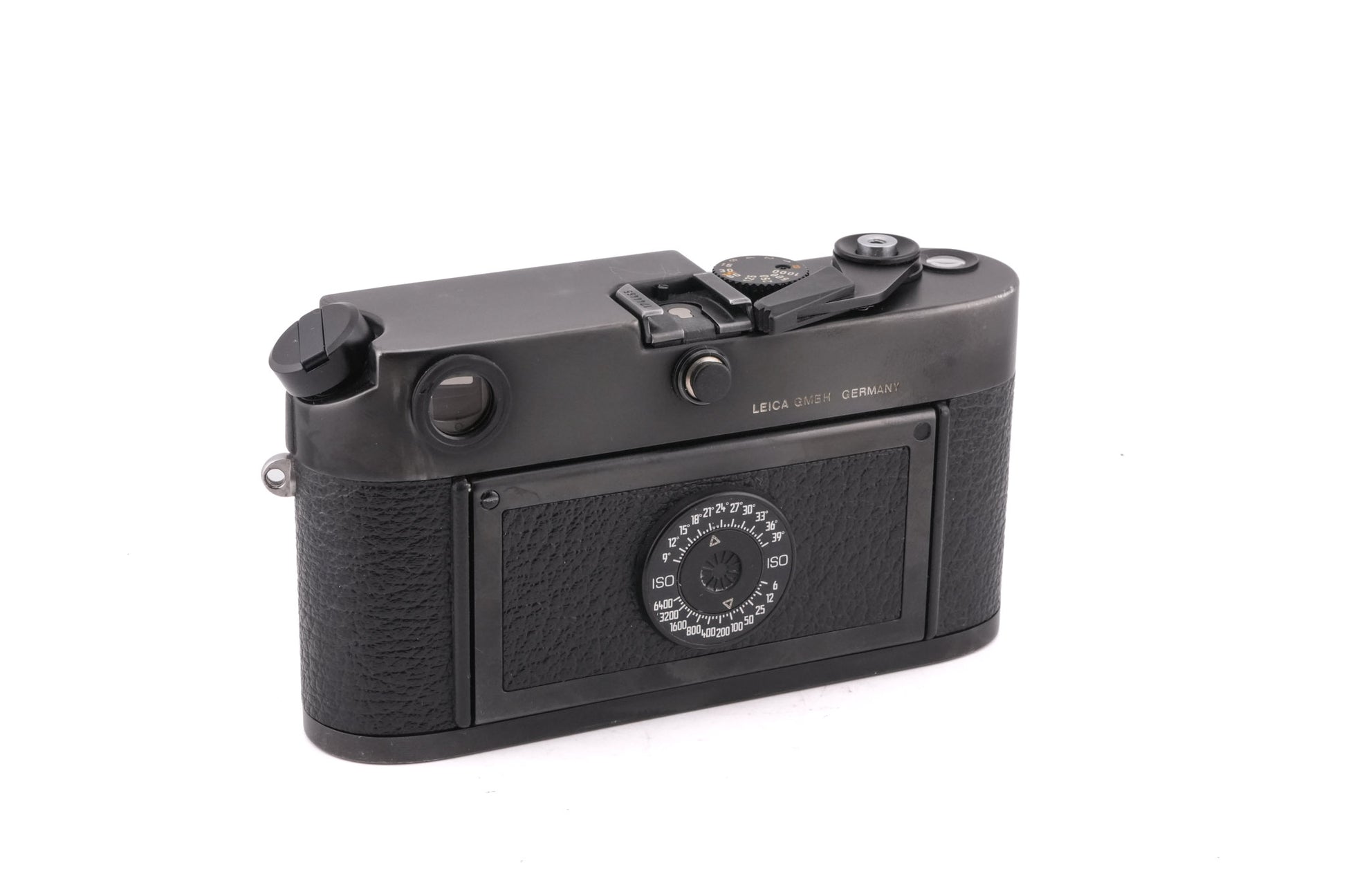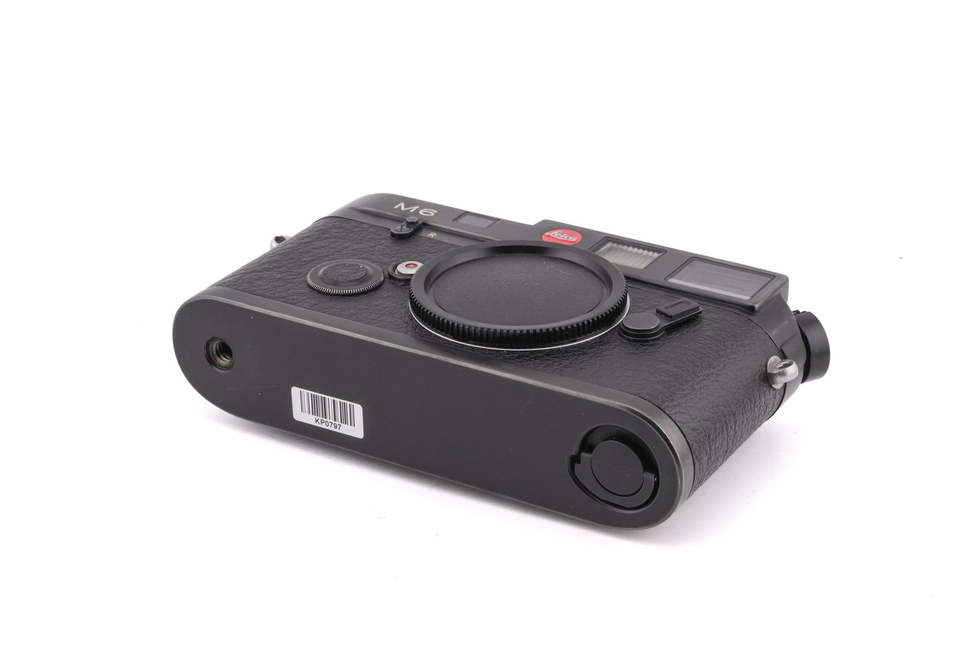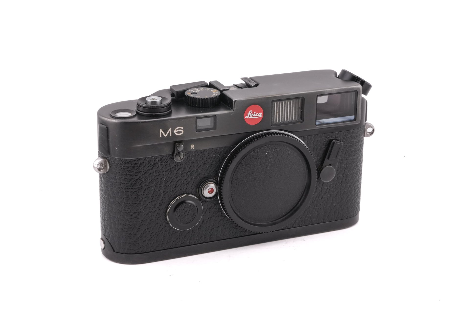 Manual focus M-mount 35mm rangefinder camera introduced by Leica in 1984. The M6 is similar to the M4-P but adds through-the-lens metering. The top cover was changed to a zinc casting making the M6 stronger than the previous M series cameras. Like the M4-P the M6 has a 0.72x viewfinder with framelines for 28/90mm, 35/135mm, and 50/75mm. Metal body available in black (10404).