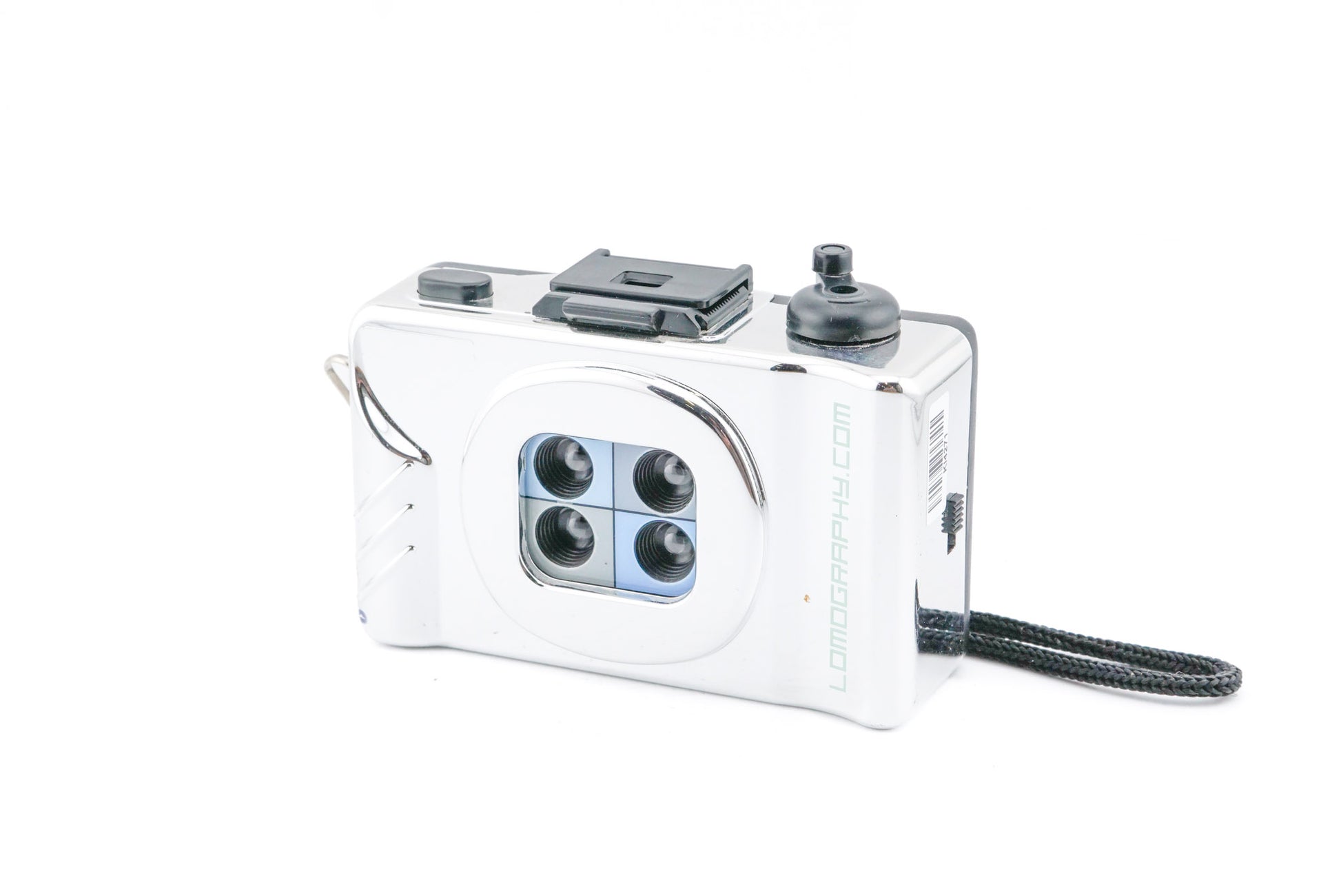 Fixed focus 35mm point-and-shoot camera made by Lomography. Uses a rotating shutter for 4 sequential exposures. Plastic construction available in various colors.