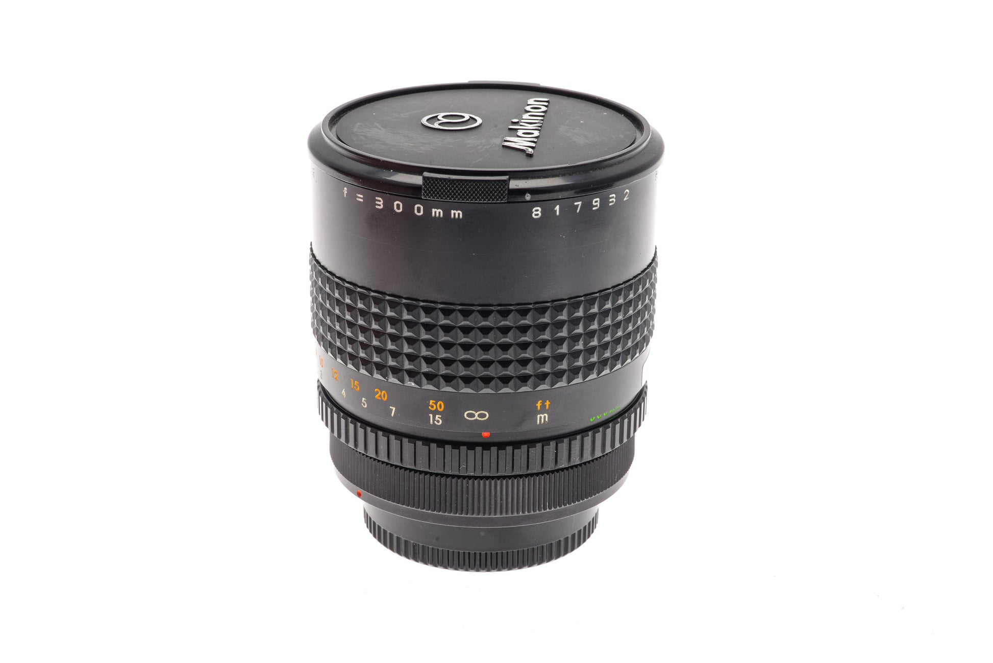 Manual focus reflex telephoto lens made for Canon FD mount SLR cameras by Makinon. Fixed aperture due to mirror reflex design. Metal body available in black.