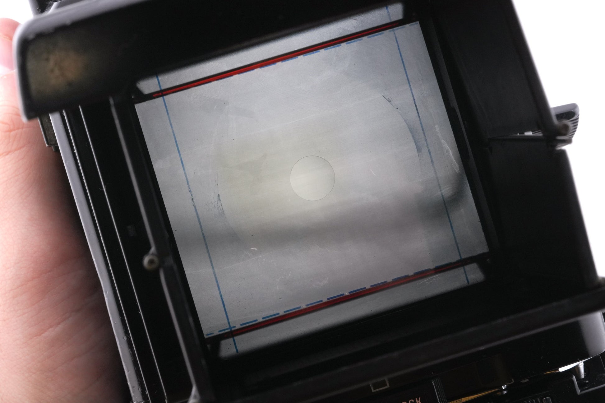 Waist-level finder made for the RB67 cameras introduced by Mamiya. It has a pup-up close focusing loupe. It underwent different design changes throughout production. Older versions have 4 sides that open individually. Metal and plastic body available in black.