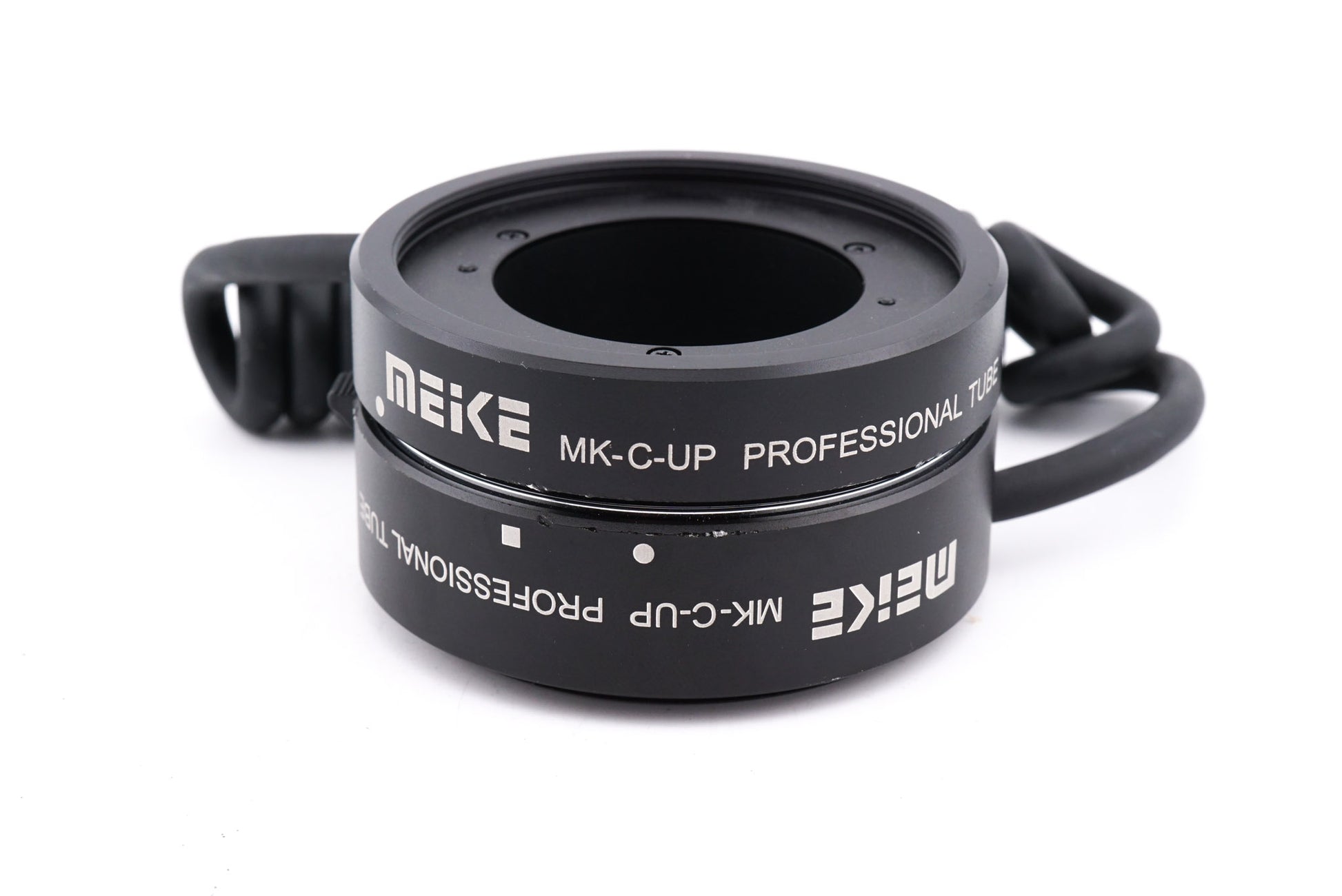 Extension tube set made for Canon EF & EF-S mount SLRs by Meike. Allows for reverse mounting of lenses with full autofocus and aperture control. Metal body available in black.