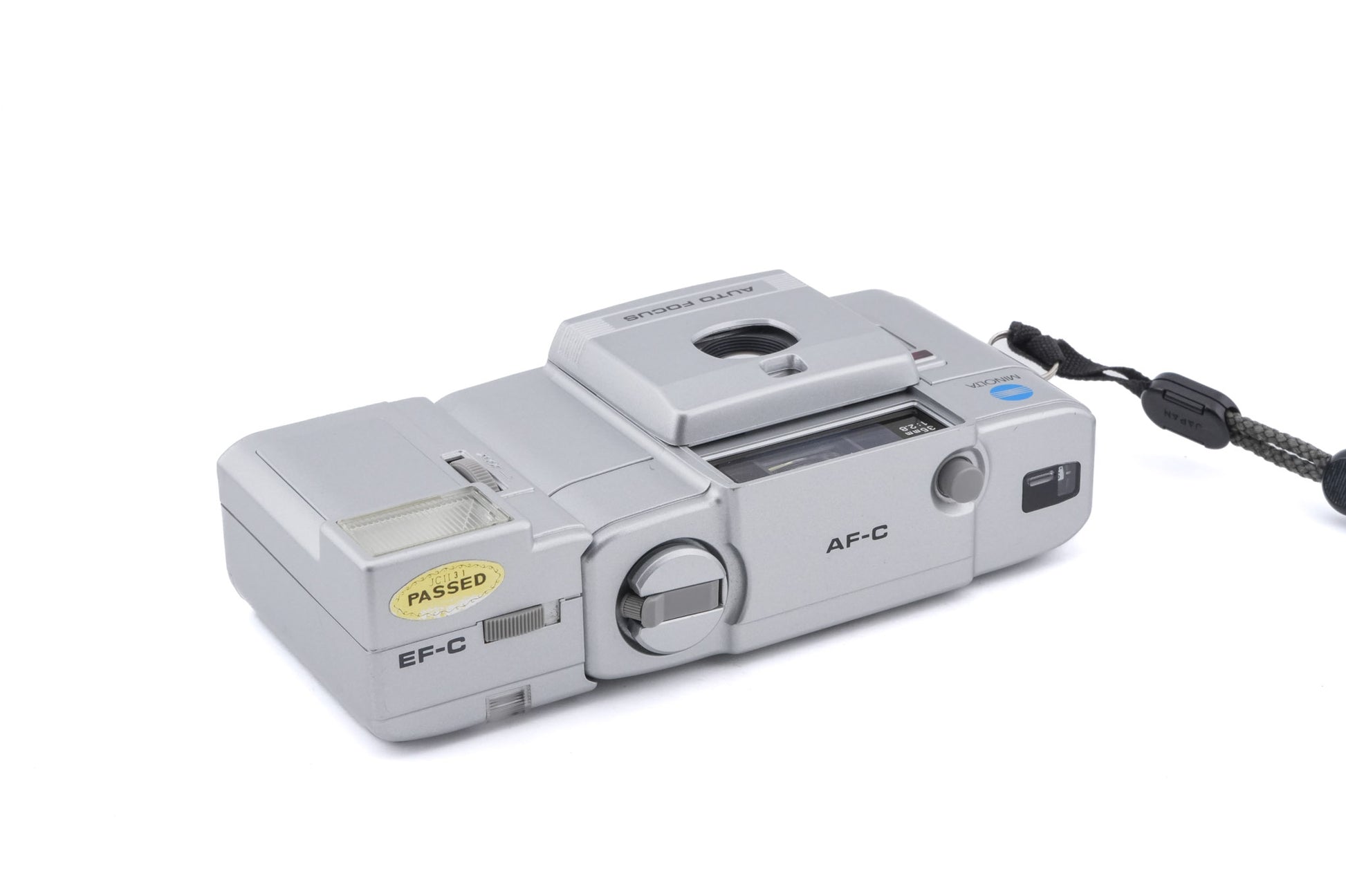 Autofocus 35mm point-and-shoot camera released by Minolta in 1983. It has a manual film advance and rewind with a vertically sliding lens cover and manual ISO control, which allows for basic exposure compensation. It's often found with the detachable EF-C flash. Plastic body available in black, and silver.