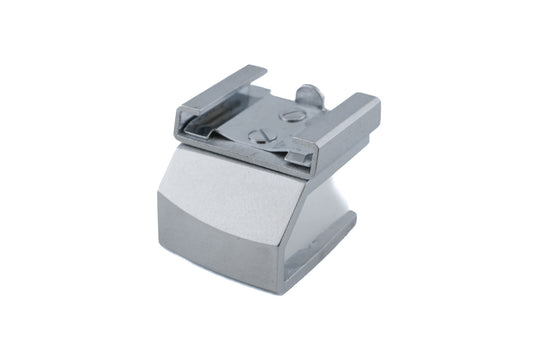 Removable accessory shoe made by Miranda. Metal body available in silver.