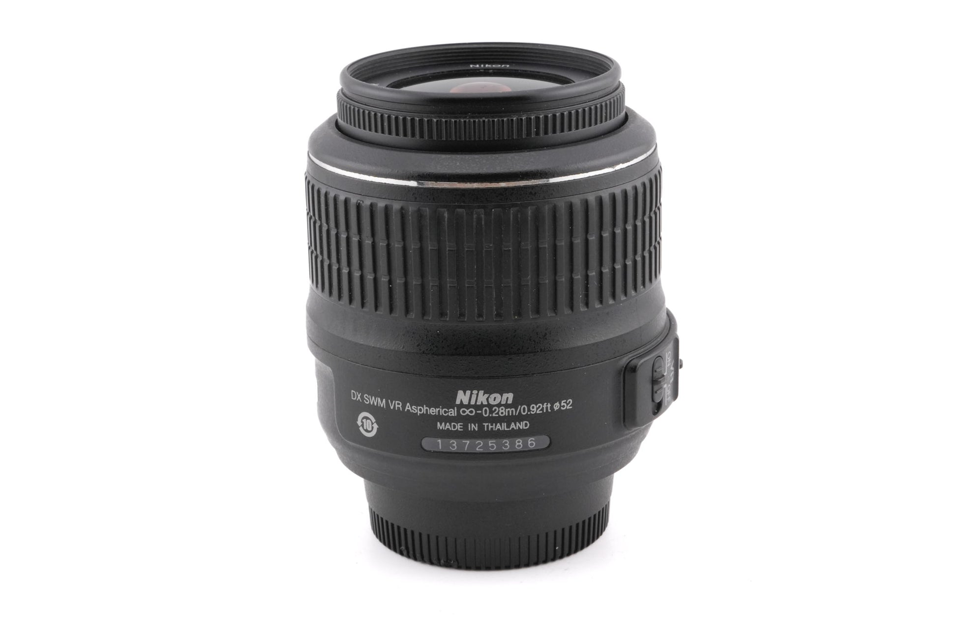 Autofocus normal zoom lens made for DX-mount DSLRs by Nikon. The lens has Vibration Reduction (VR) for more stable shots in low-light conditions. Plastic body available in black.