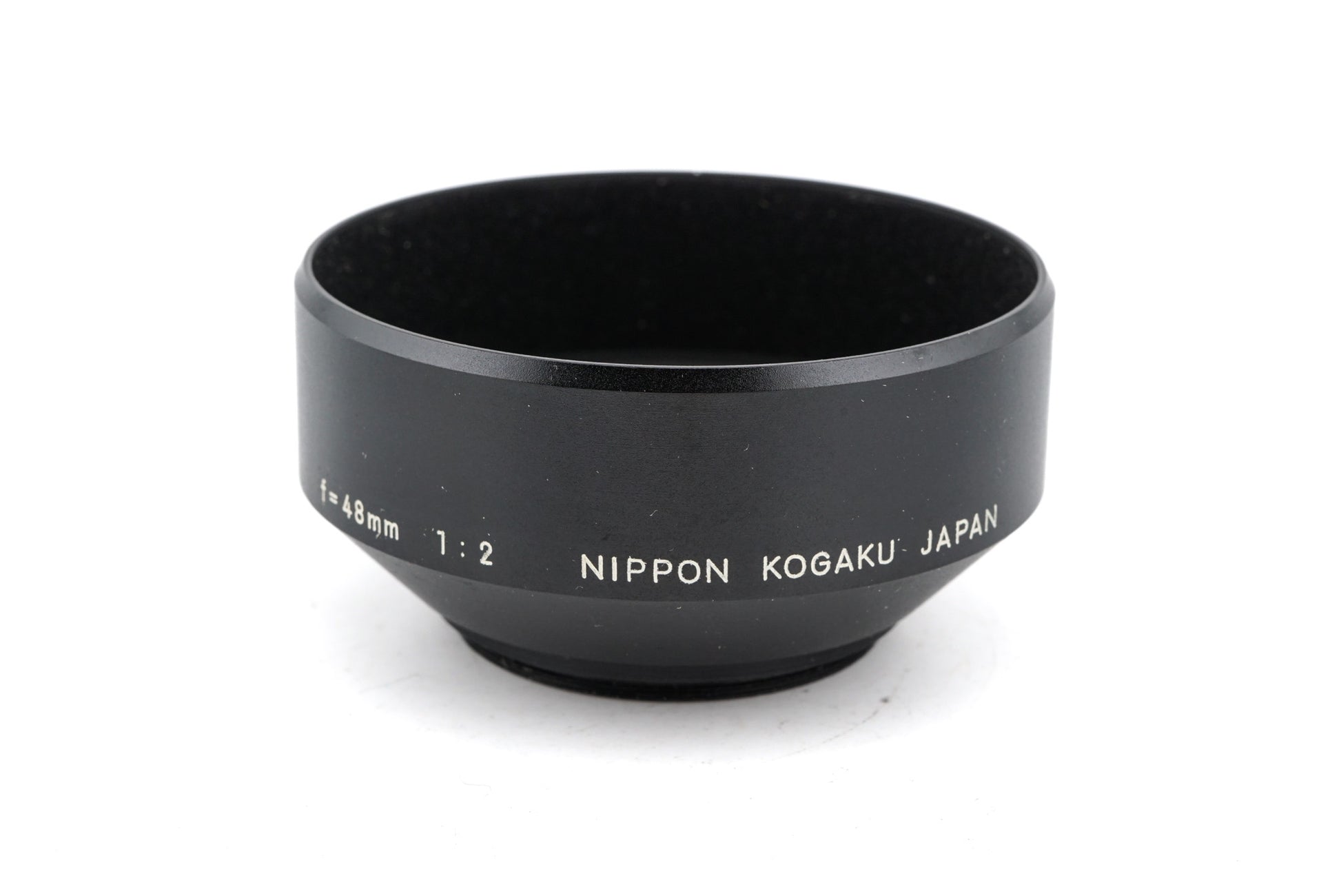 Lens hood made for the Auto 35 35mm SLR camera by Nikon. It will fit any lens with 40.5mm filter threads. Metal body available in black.