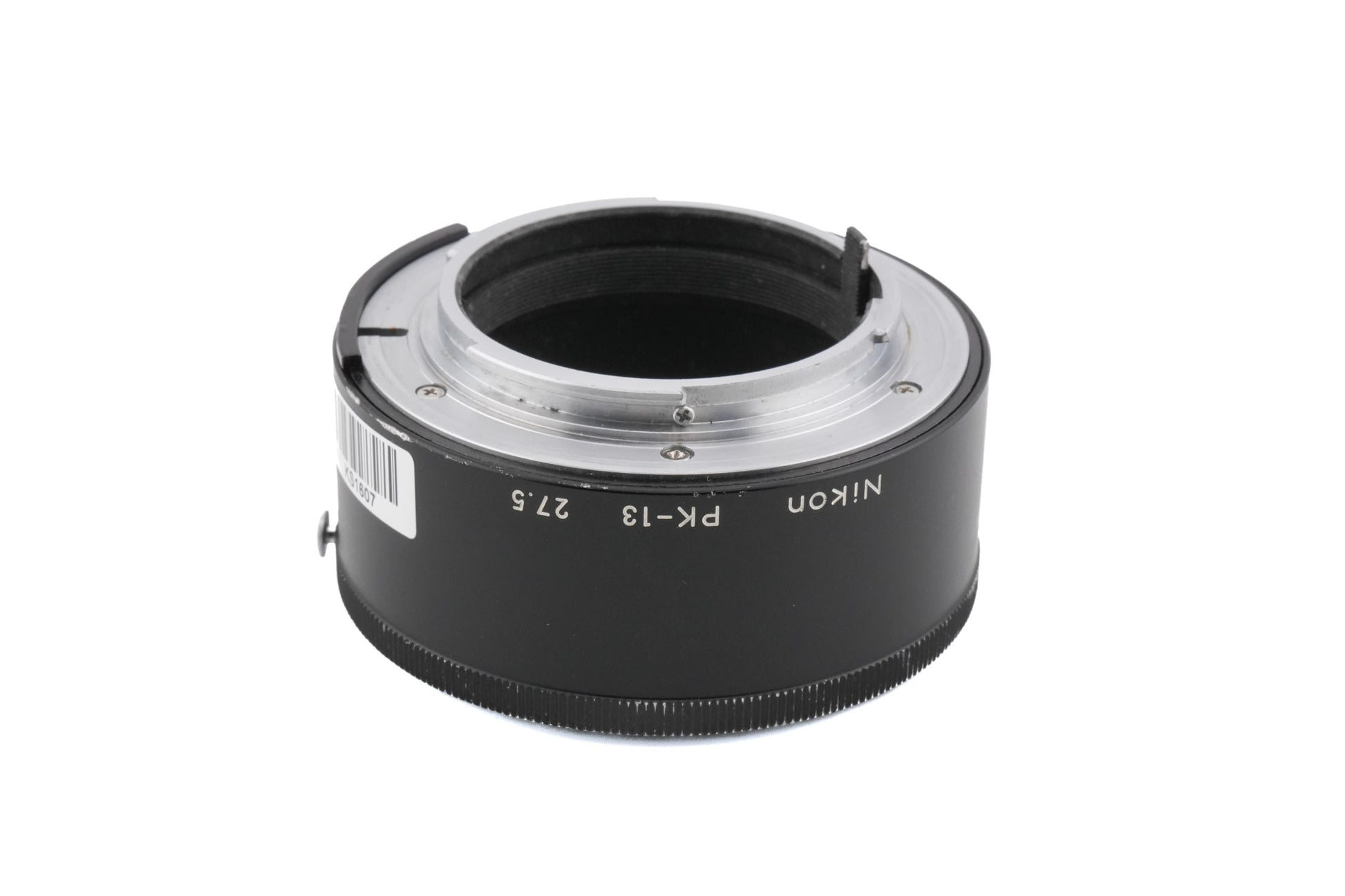 Extension tube made by Nikon for F-mount lenses and cameras. It gives 27.5mm of extension and communicates aperture information from the lens to the camera via an integrated AI tab. It will not work properly with pre-AI lenses. Metal body available in black.
