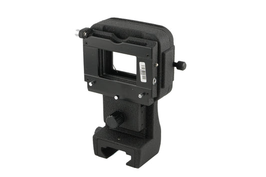 Slide copying adapter made by Nikon. Used with the PB-6 bellows to duplicate slides. The slide holder adjusts ± 6mm up/down and ± 9mm left/right. Metal body available in black.