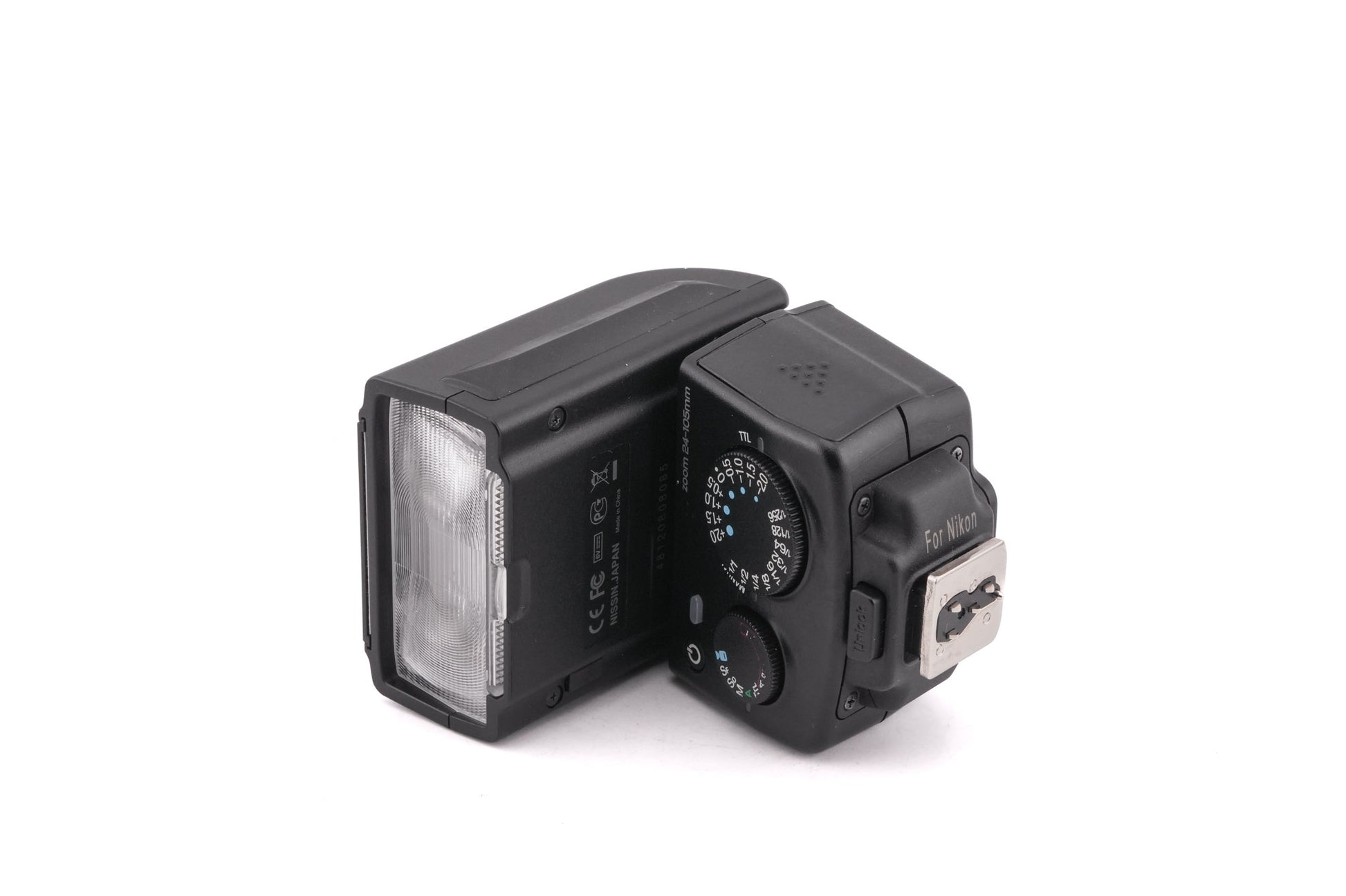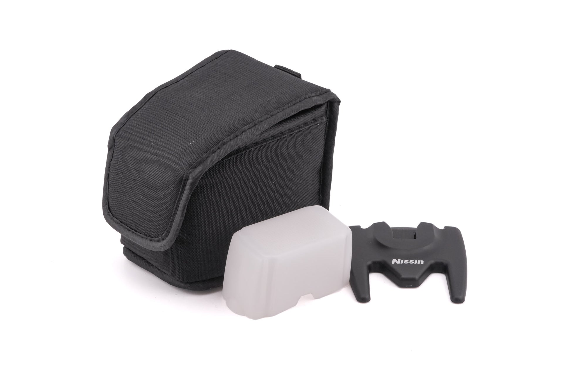 Compact flash made for Canon EF / EF-S SLRs by Nissin. Built-in diffuser and bounce card. Black plastic body.