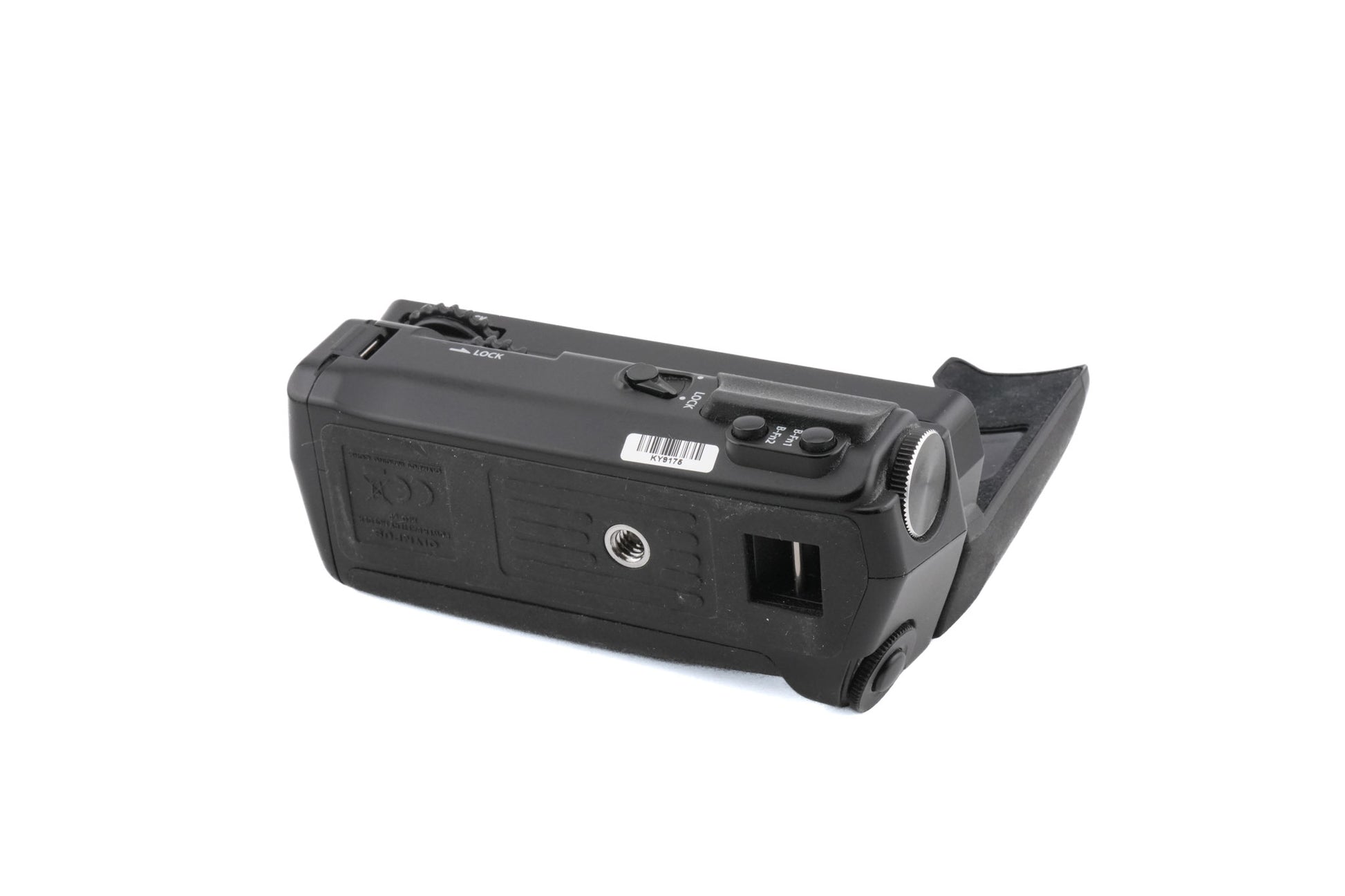 Grip and battery part for Olympus OM-D E-M5 camera. With shutter release button and control dial. Black metal body.