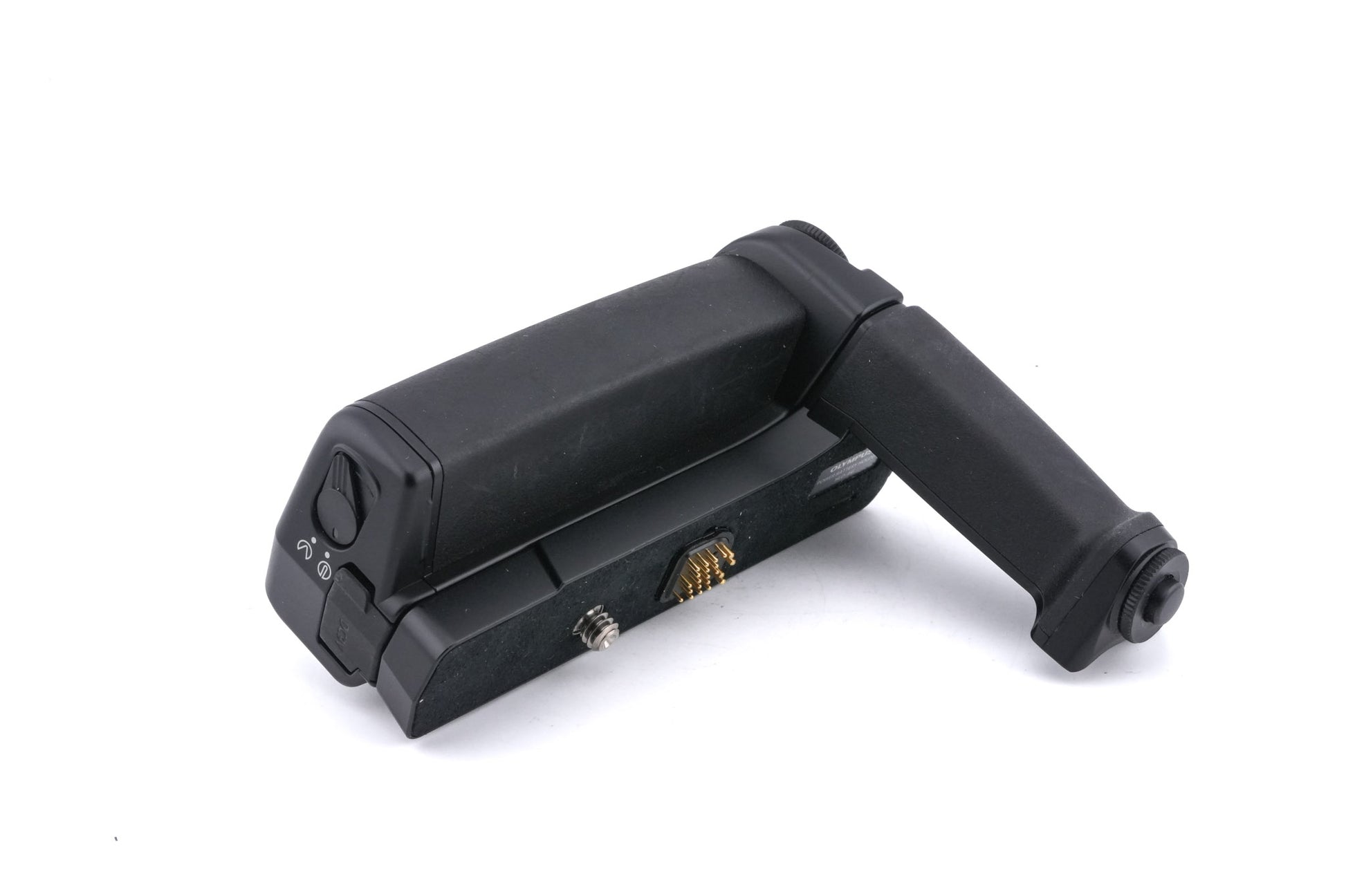 Grip made for the Olympus OM-D E-M5 camera introduced by Olympus. It has a shutter release button and a control dial. Metal and plastic body available in black.