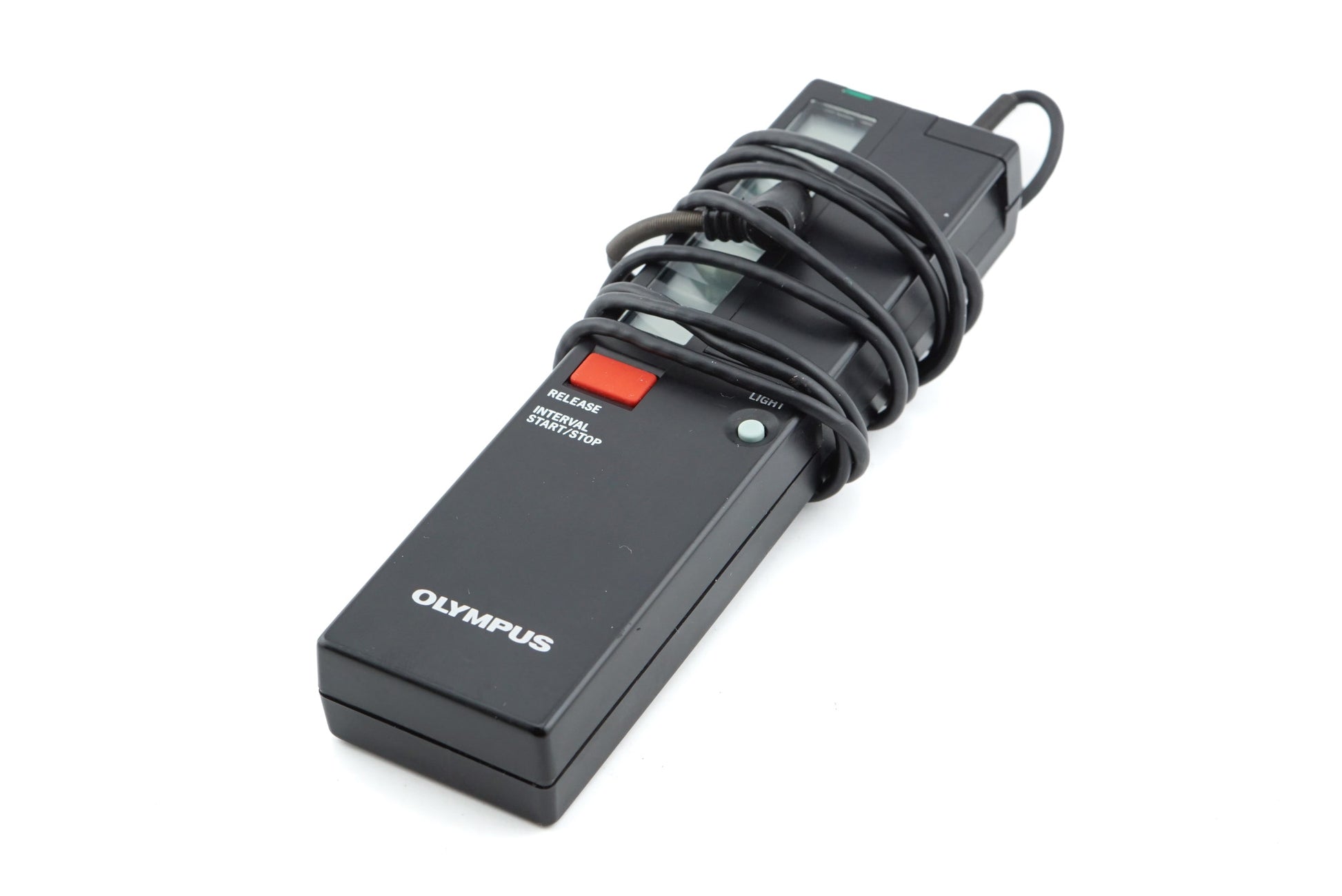 Remote controller for compatible Olympus OM system motor drives and winders. Features interval capabilities and an LCD screen for controlling the settings. Plastic construction in black finish.
