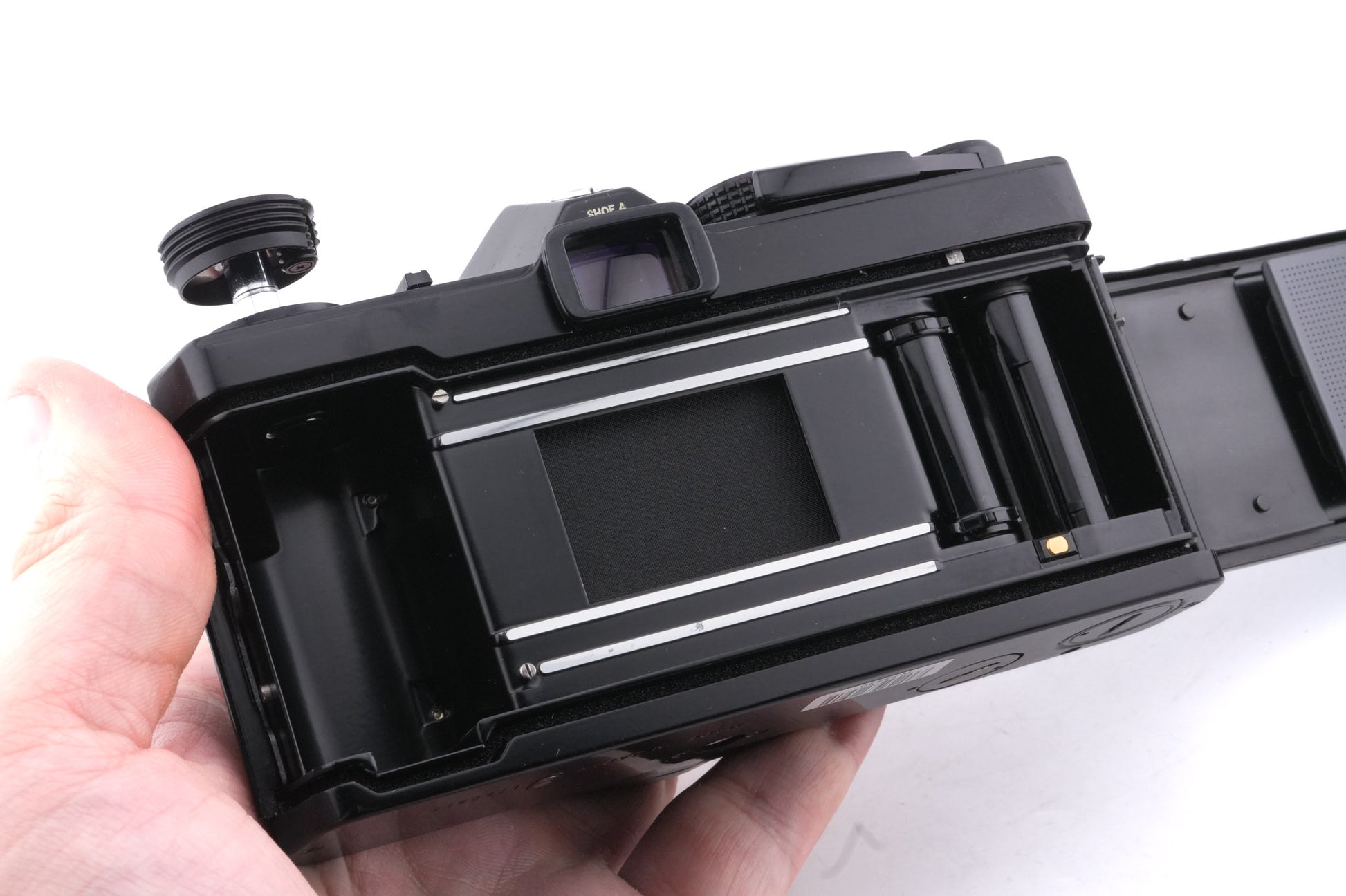 Manual focus OM-mount 35mm SLR camera released by Olympus in 1979. The OM-1N added flash capabilities to the previous models. Metal body available in black & silver.