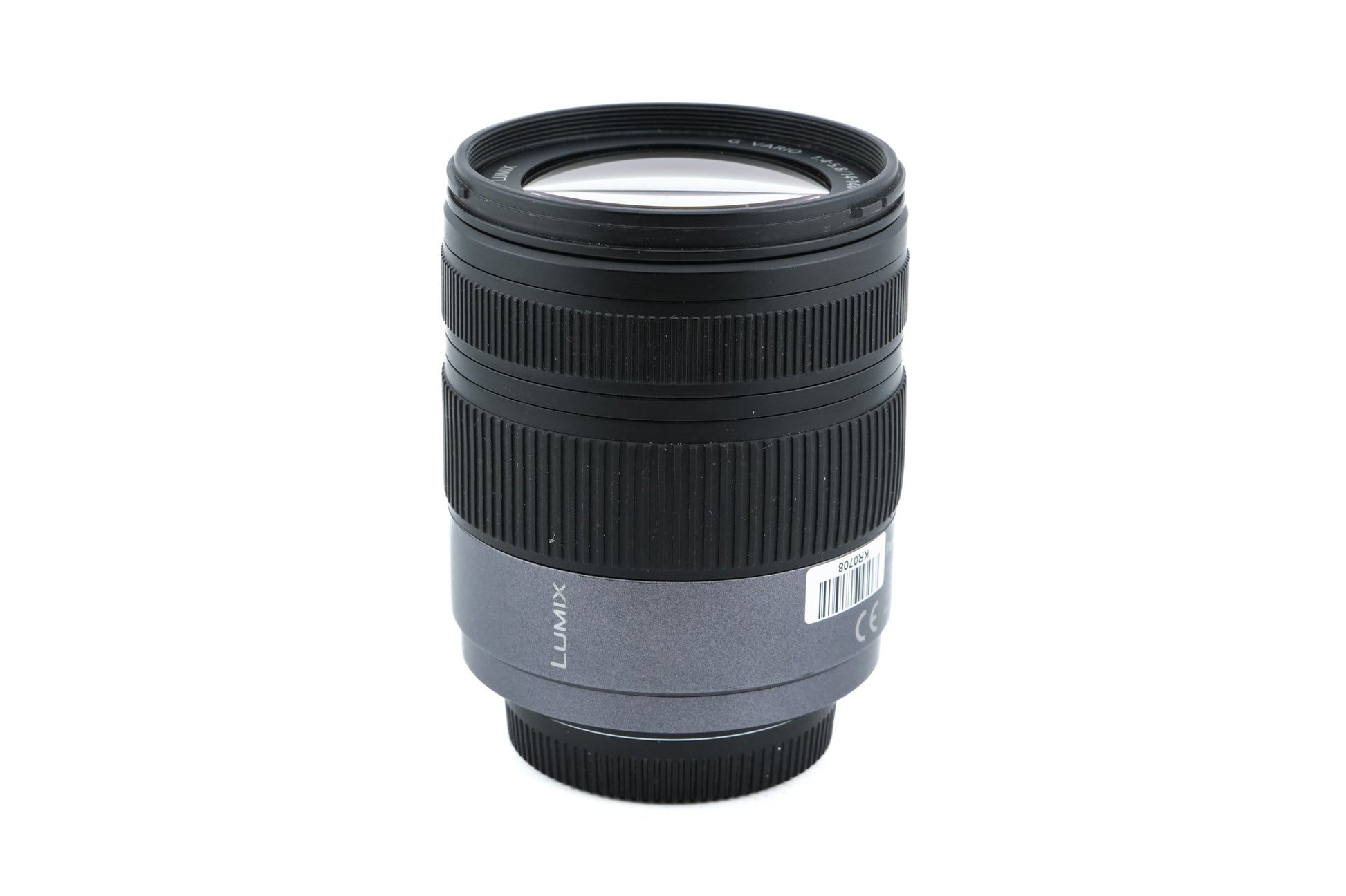 Autofocus superzoom lens made for Micro Four Thirds mount digital mirrorless cameras by Panasonic. It is designed for Micro Four Thirds-sized sensors and gives the equivalent field of view to a 28-280mm lens on full frame/35mm. The lens has image stabilization (Mega O.I.S.) and uses aspherical (ASPH) lens elements to improve image quality. The product code is H-VS14140. Plastic/metal body available in gray.