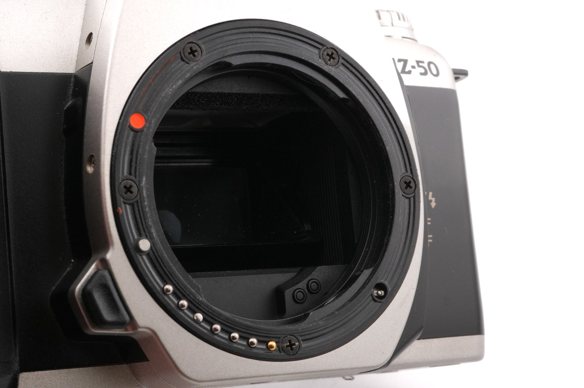 Autofocus 35mm K-mount SLR camera introduced in 1997 by Pentax. It has a built-in flash with a guide number of 11 at ISO 100. Manual focus K-mount lenses only work wide open, the camera cannot stop them down. It has automatic film advance and rewind. Plastic body available in champagne.