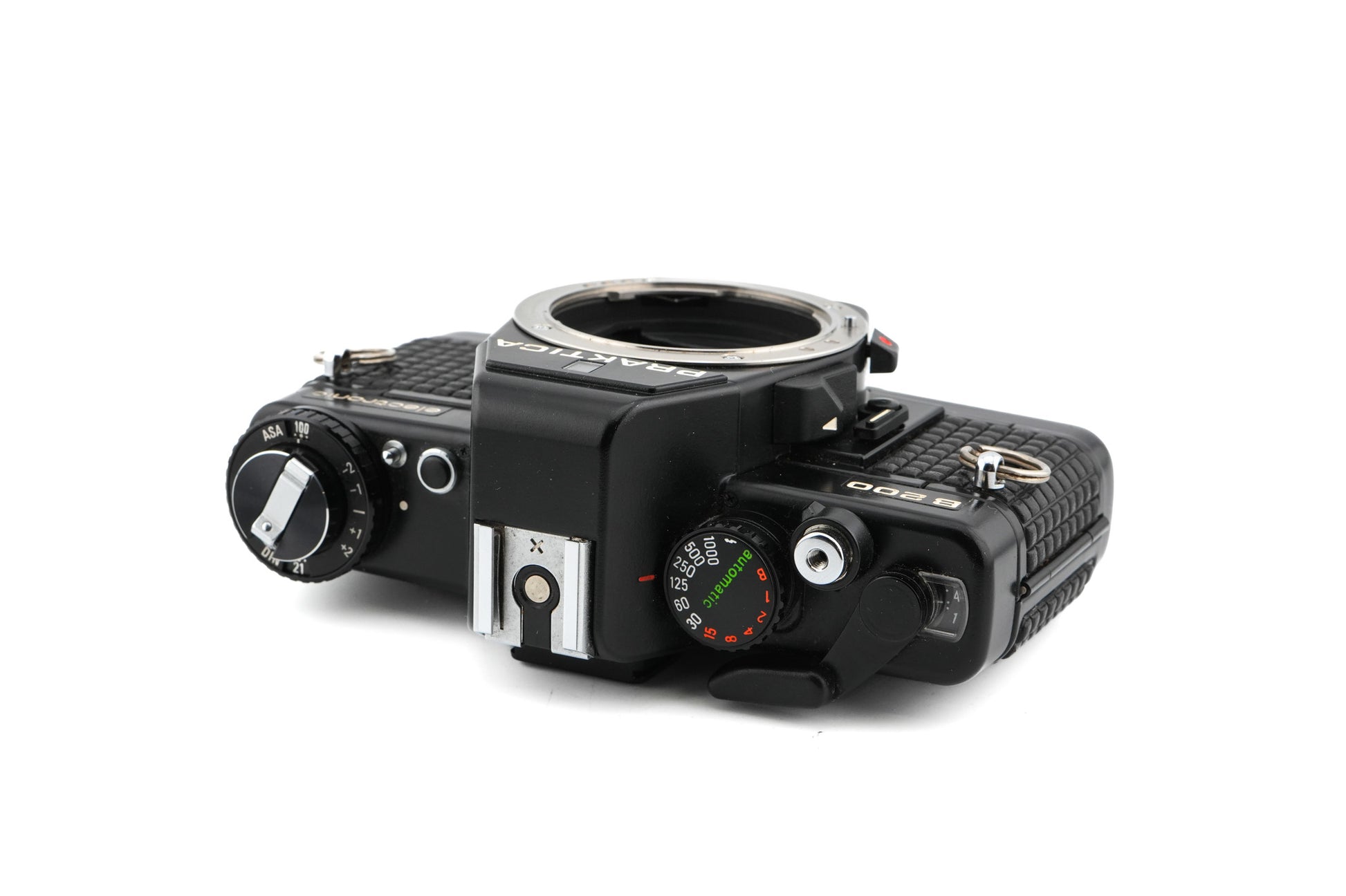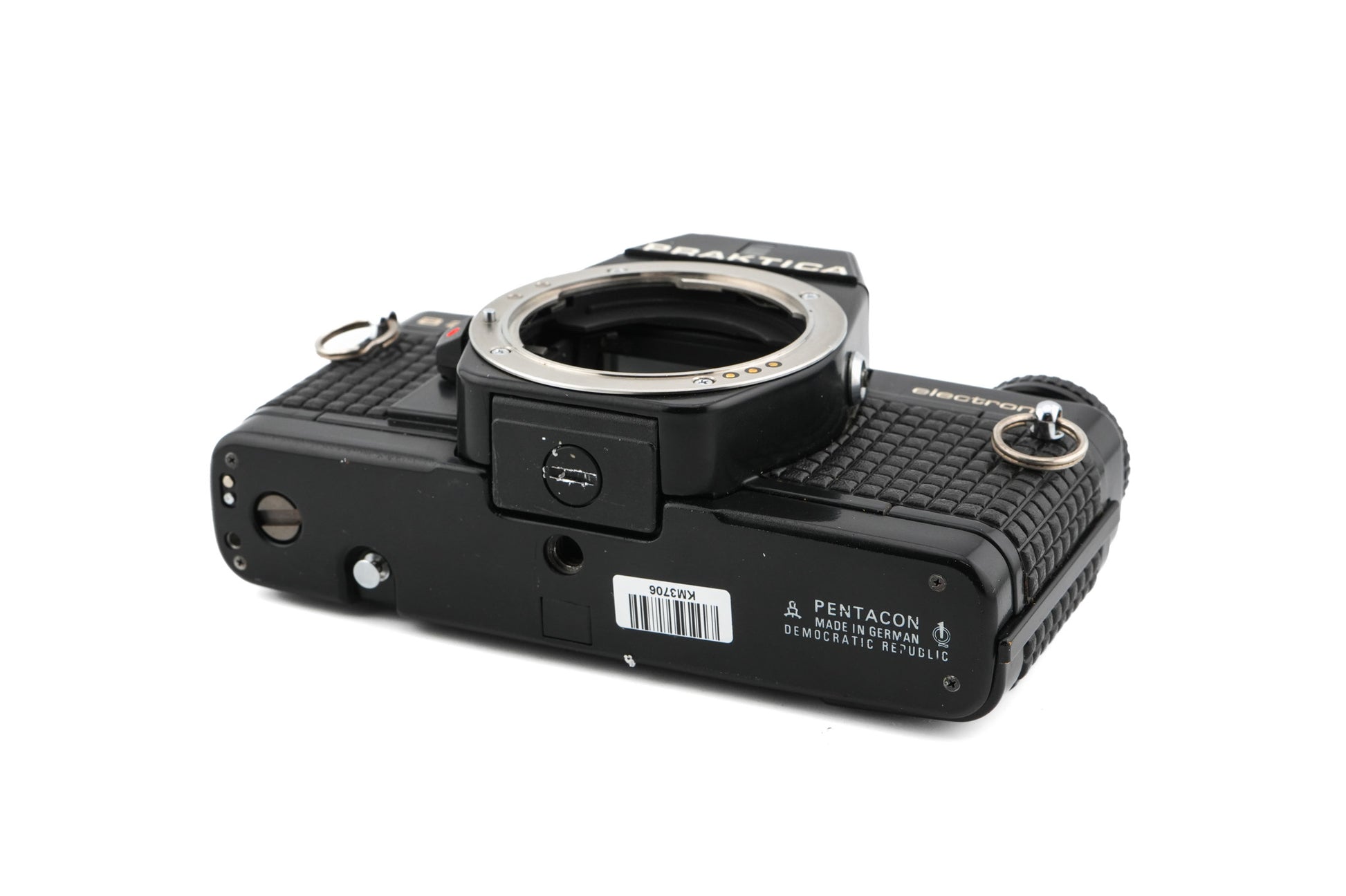 Manual focus Praktica B-mount 35mm SLR camera made by Practika. The camera has aperture priority auto exposure mode. The shutter fires mechanically at 1/90s. Manufactured in the German Democratic Republic. Plastic body available in black.