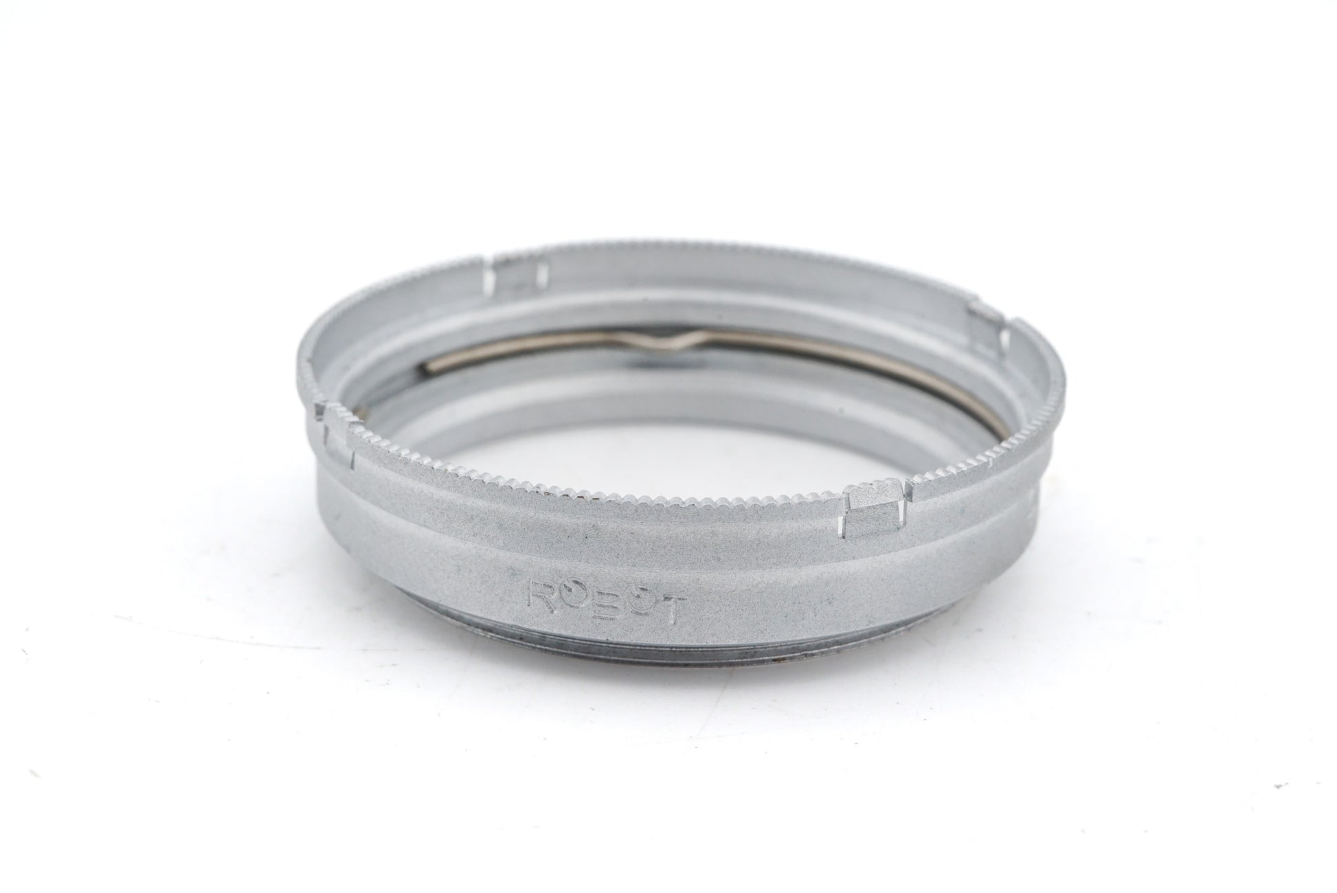 Adapter ring made by Robot. It screws into the lens' filter threads and allows for mounting various accessories, including push-on or drop-in filters. Metal body available in silver.