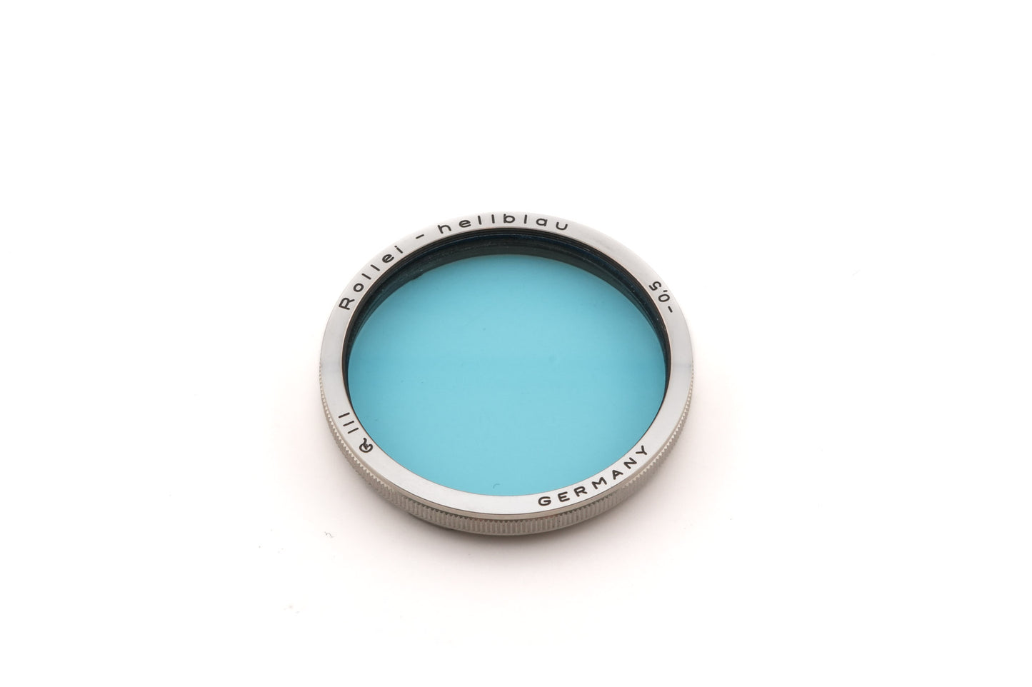 Light blue filter made for Bay III TLR cameras introduced by Rollei. Metal body available in chrome.