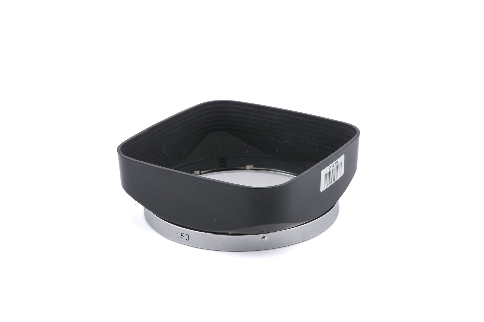 Lens hood for 50mm lenses made for the Rollei SL66 120 SLR cameras introduced by Rollei. Plastic & metal body available in black.