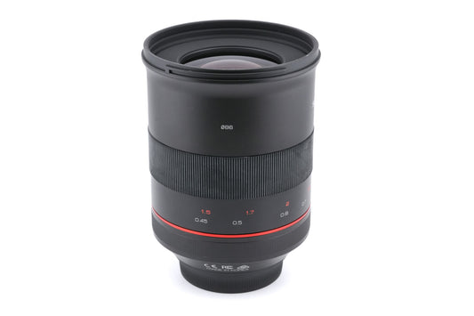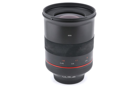 Manual focus normal lens made for EF-mount DSLR cameras introduced by Samyang. Metal body available in black.