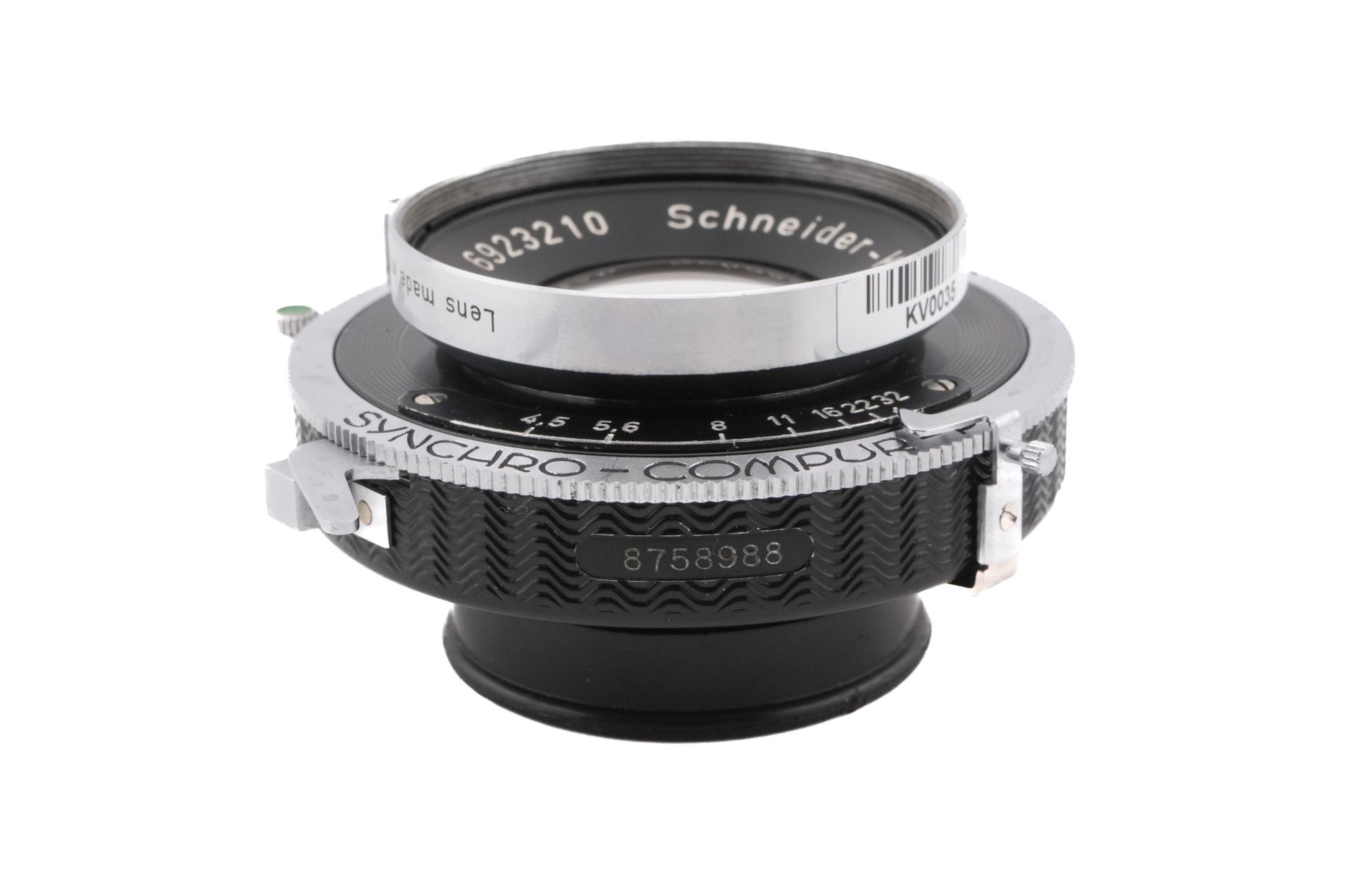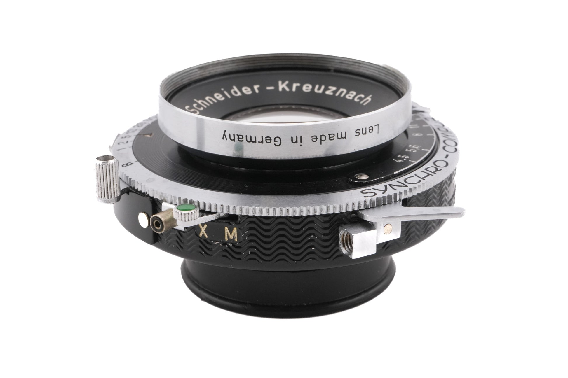 Standard lens made for medium format view cameras by Schneider-Kreuznach. Metal body available in silver.