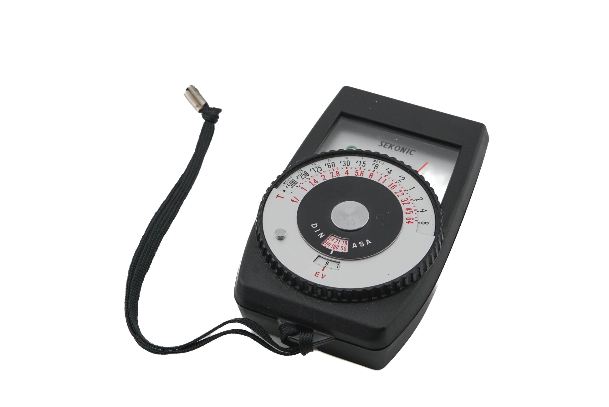 Compact selenium light meter from Sekonic. Plastic body available in black.