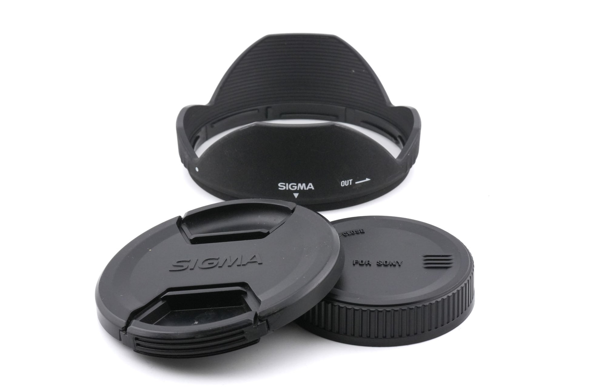 Autofocus wide-angle zoom made for Sony A mount DSLRs by Sigma. It uses an HSM-focusing motor. Plastic body available in black.