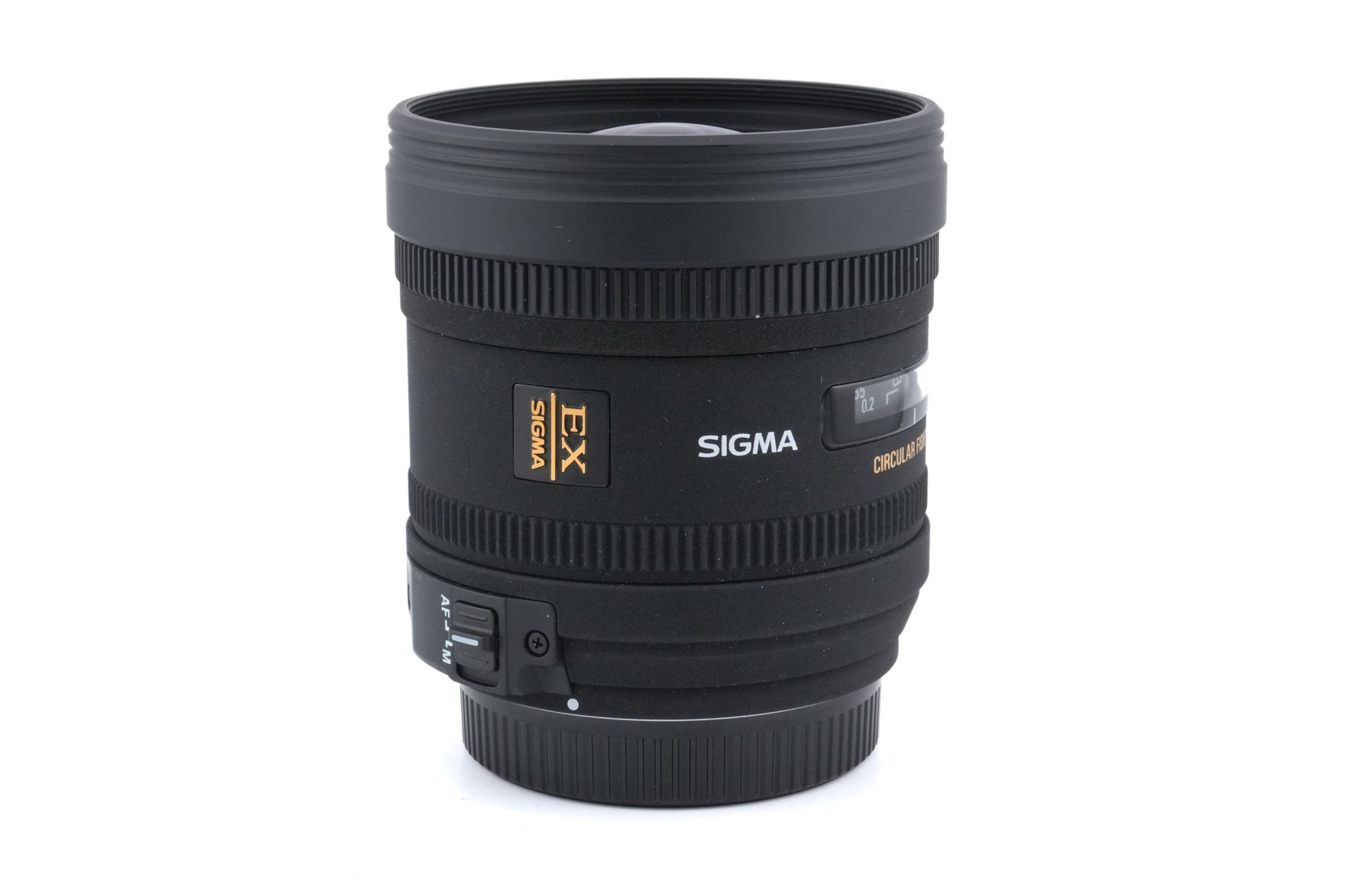 Autofocus circular fisheye lens made for Sony A mount DSLR cameras by Sigma. Plastic body available in black.
