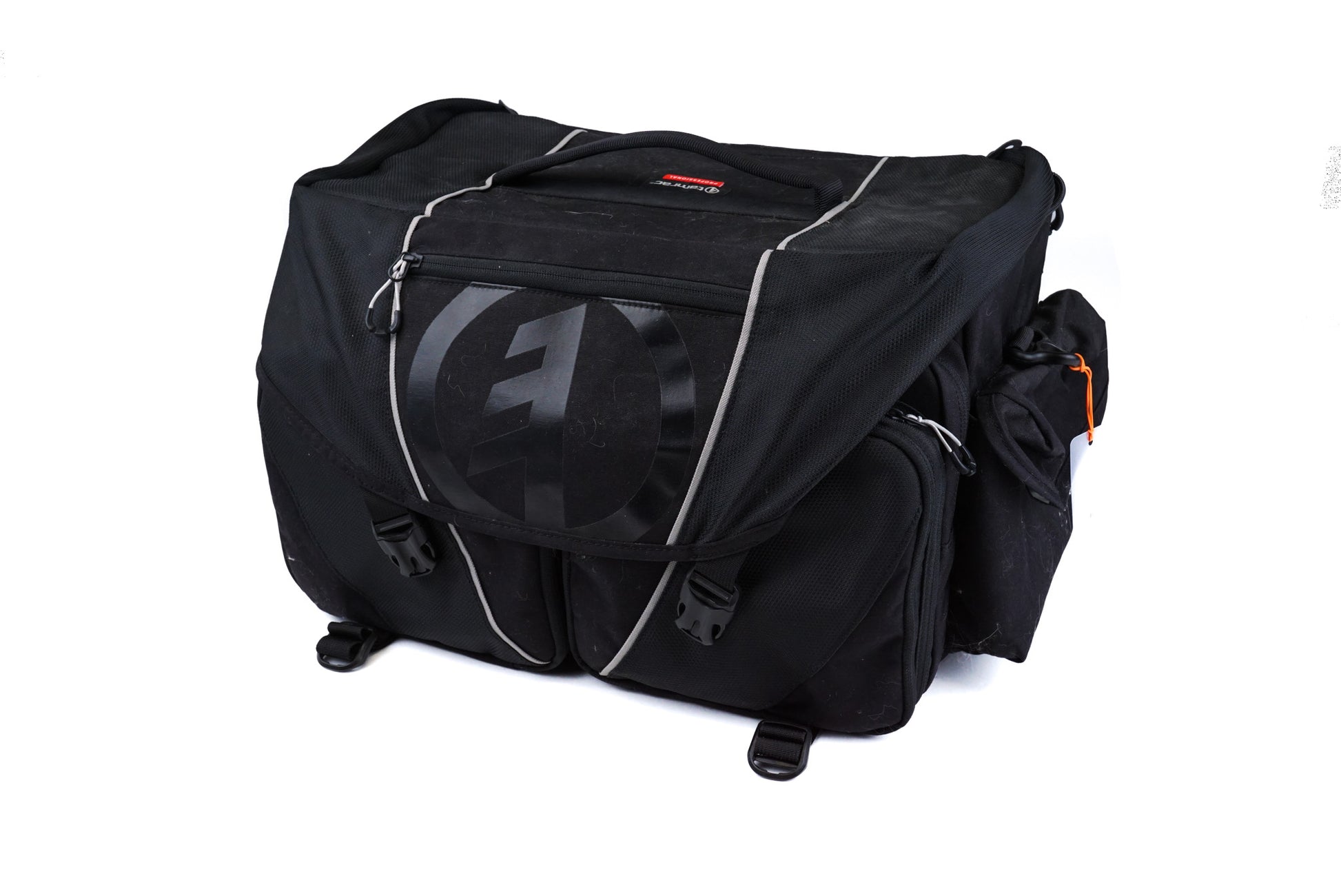 Shoulder bag for camera bodies and lenses made by Tamrac. Fabric construction available in black.