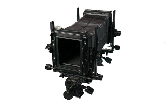 Lightweight Toyo monorail with graflok back. Mostly made from hard plastic parts. Takes 158x158mm lens boards.